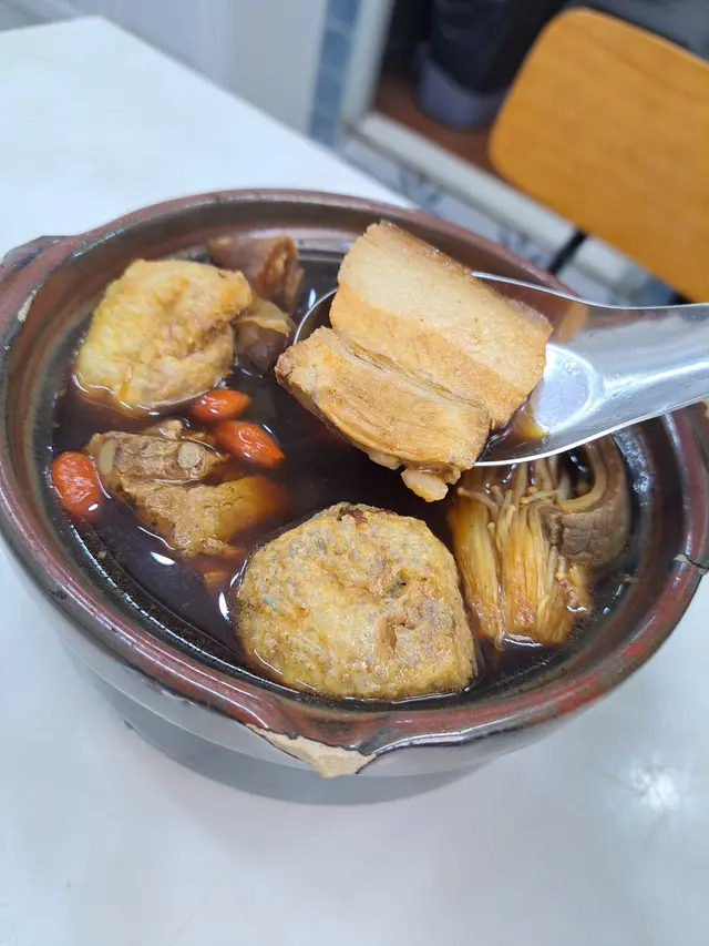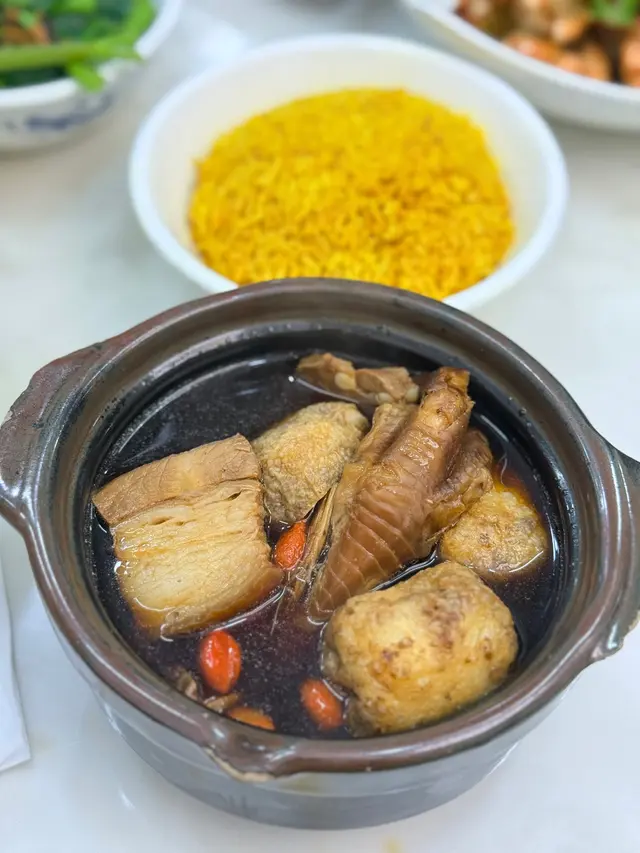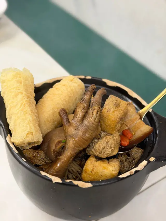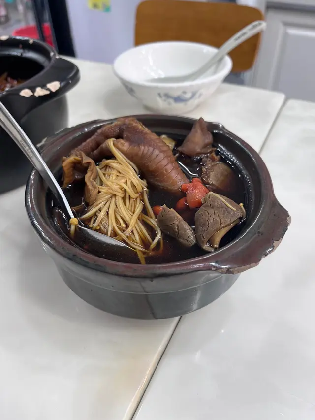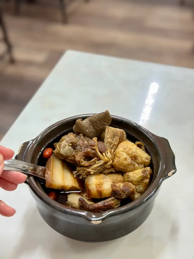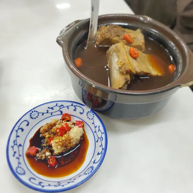 叁巴辣椒醬帶微辣又唔嗆喉, 味道濃但食得出菜香~細滲 $88肉骨茶一上枱個瓦煲仲冒煙~ 湯底呈深啡色, 有陣陣中藥香同胡椒香飄出嚟~~飲一啖, 首先係濃濃蒜香撲鼻, 之後係胡椒辣味慢慢滲出, 最後帶少少草根藥材香同回甘