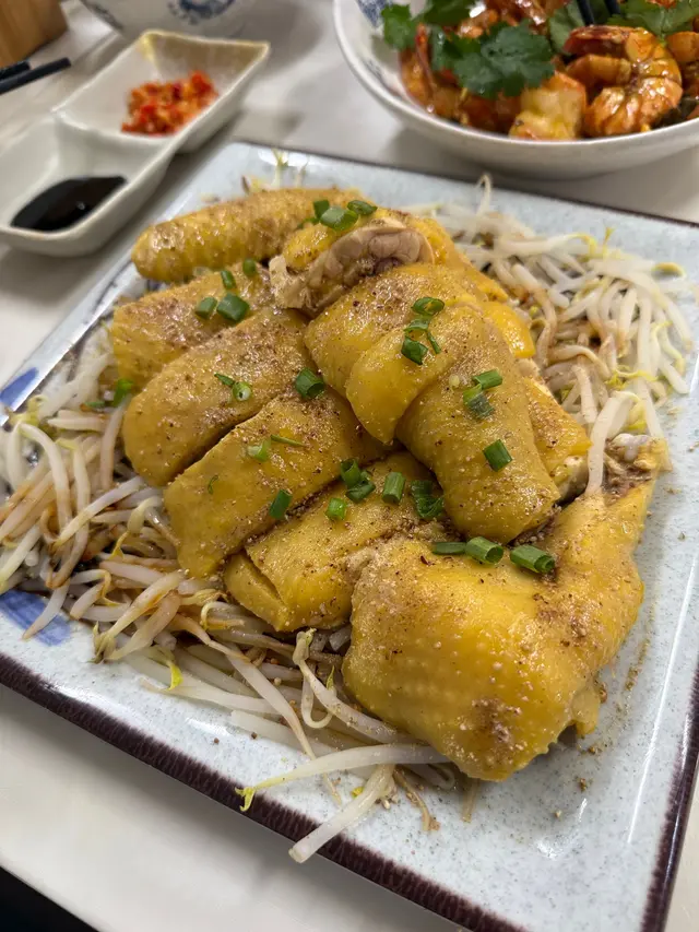 味道濃郁但唔苦, 飲落暖笠笠~~~食材配料好豐富, 有豬腩肉, 豬肚, 炸豆卜, 雞腳, 金菇等等...全部都吸收晒肉骨菜既精華, 超正丫!!芽菜雞(例牌) $88馬來風味嘅切雞~~ 雞肉滑到出油光, 皮厚帶一層啫喱感, 雞肉入味嫩滑!!芽菜夠粗身、爽脆又唔會帶生青味~個豉油底調得香甜, 淋喺雞肉上面一齊食真係一流