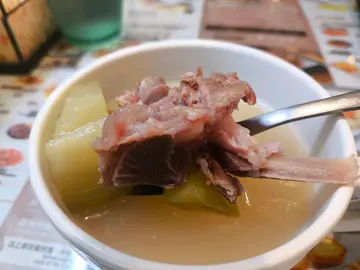 ,我喺唔食苦瓜嘅)。 后来我同 𠮶位女侍应 讲多谢佢送啲嘅汤,佢话唔使客气,仲问我使唔使加返啲热茶