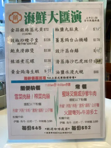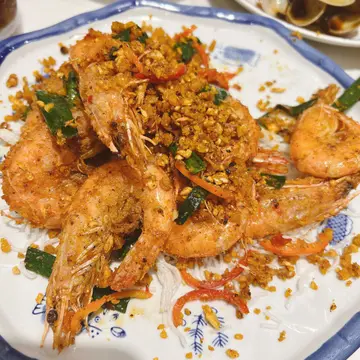 我同朋友路过本身见餐牌都有少少贵,但都入去试一试。坐低餐厅姨姨,就话今日椒盐大虾特价$68.00要唔要试?平日一个都百几蚊。我同朋友叫了一碟试下。哗,真系好新鲜,唔黐壳,椒盐味道适中。好有镬气!我同朋友仲叫咗:豉汁炒花甲豆豉鲮鱼炒油麦菜茄子鹅肠煲炸子鸡半只其他𩠌都炒得好好,拍得著大排档同酒楼水准,整体𩠌,镬气十足,好有大排档风味!鸡都好滑,厨房控制得好好