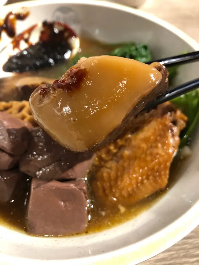 早早地,想吃麵做早餐,見到來多碗未吃過,於是試一下。見到外賣3餸送罐裝汽水,正喎!進去像以前一樣在門口位選食物麵底,我最喜歡粗麵,不要湯撈麵見到每樣食材賣相不錯,店內鎮店之寶尤魚,所以必選。見到尤魚都吸了鹵水,色澤不錯,選了!吃下真心非常彈牙入味豆腐卜我吃到甜豉油和辣辣地,吸了少少辣油好滋味豬皮都是非常入味,又不咸♡豬紅個人情懷喜歡,補血之選,哈哈!枱上調味料比較普通,沒有想要辣菜葡地方很衛生如果吃辣記得取麵時自己落辣椒醬,自家秘製,辣辣咸香麻麻,多重層次。蔥也是自己落的,各方便都不錯,價錢又平,材料很懷舊鹵水味道不錯查看更多