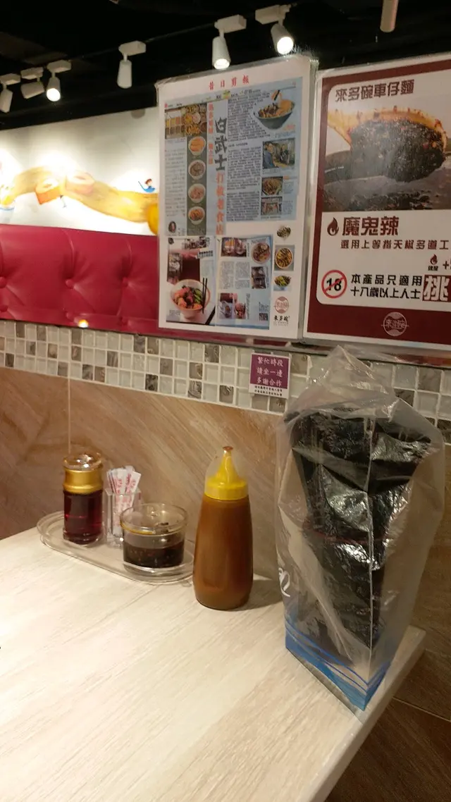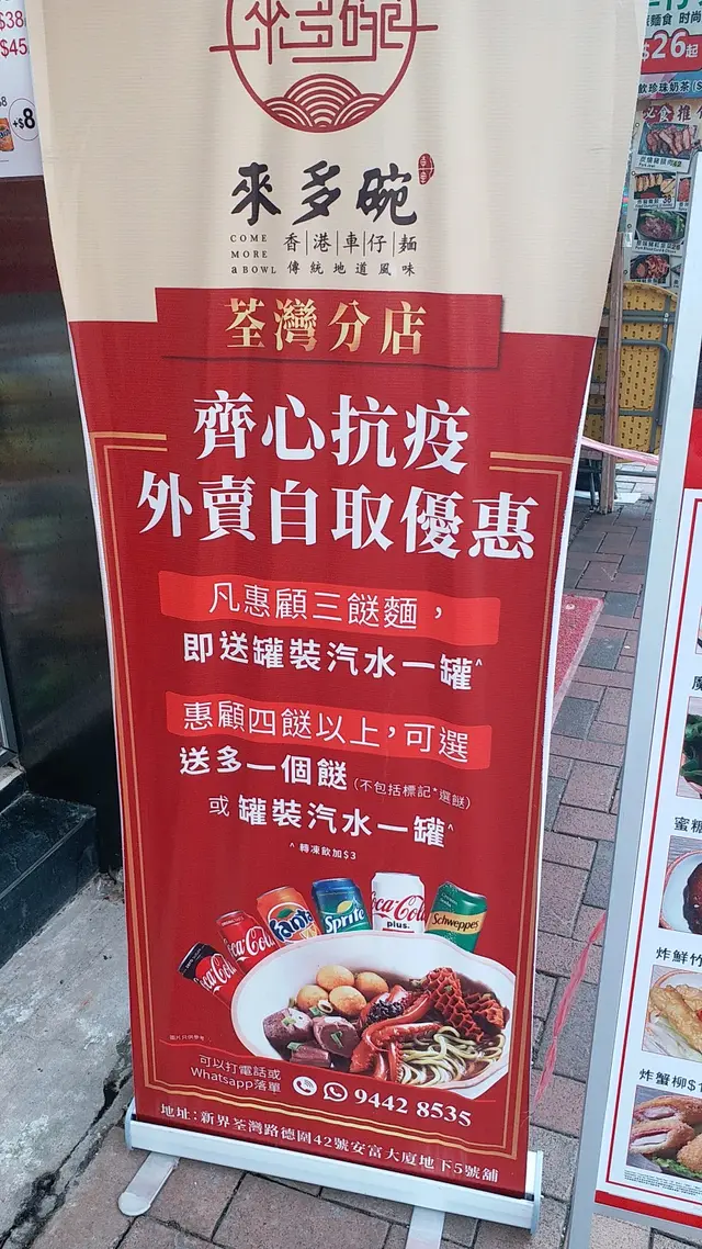荃灣路德圍有好多麵食鋪,今次就黎左「來多碗車仔麵」食返碗車仔麵先~來多碗係先叫餸比錢後入座的,所以如果你有選擇困難,可以先係門口望望menu😆 佢餸既選擇都幾多架,而我覺得佢好聰明咁將必食推介寫左上牆度~ 而我就貪心d叫四餸,食佢其中四款必食推介😏我叫既係「秘製牛腩、秘汁雞翼、古法豬紅、咖哩魚蛋油麵」~🤩 自己就覺得佢餸既份量都唔少,雞翼有2隻、豬紅有5舊、魚蛋4粒,牛腩就有肉又有筋🙆🏻‍♀️-雞翼入味,而且一咬肉骨分離,除左滷水汁味,另外自己食落覺得好似有鹽水浸過既味(?!)唔知係咪不過本人幾鍾意陣味😆😆-咖哩魚蛋爽同彈牙,咖哩味對我黎講係唔辣既-牛腩牛筋入味,特別係牛筋。牛筋仲好有𡁻口-豬紅唔會太淋,完全唔會話一夾就散晒除左餸之外,呢度仲有2款辣醬,分別係秘製辣醬(圖右)同埋魔鬼辣醬(圖左)~ 因為驚辣,所以分開上個醬,個人幾鍾意秘製辣醬,除左有辣香味仲有陣甜甜地既味~ 可以撈落麵/點黎食~另外仲要左個凍豆漿,初頭以為杯上但原來係一枝枝。雖然未聽過個口牌,但味道都唔錯架~查看更多
