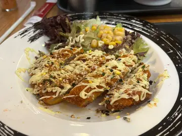 。本来叫芝士虾饼,但系冇,所以叫咗南瓜饼。南瓜饼炸得好脆,热嘞嘞嘅。入面嘅馅系橙色嘅,但系南瓜味只系有少少,唔够特出,反而有薯蓉味,仲甜甜哋,应该加咗糖,不过甜度啱啱好,加上我都钟意薯蓉,所以都钟意食呢个南瓜饼。…查看更多