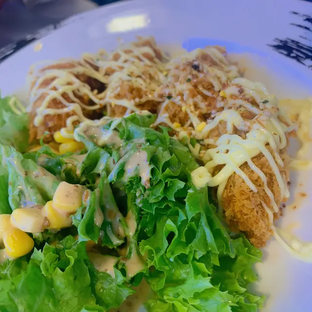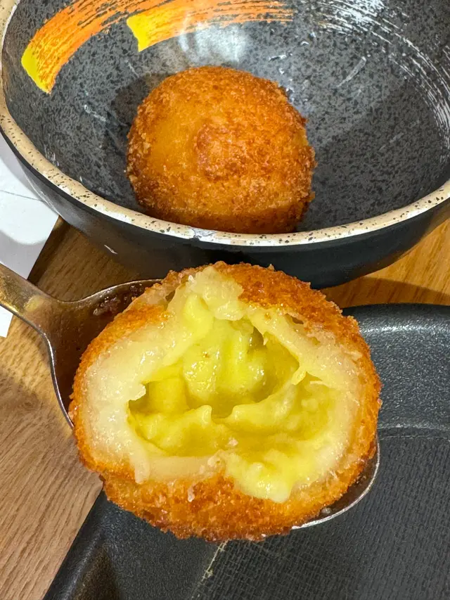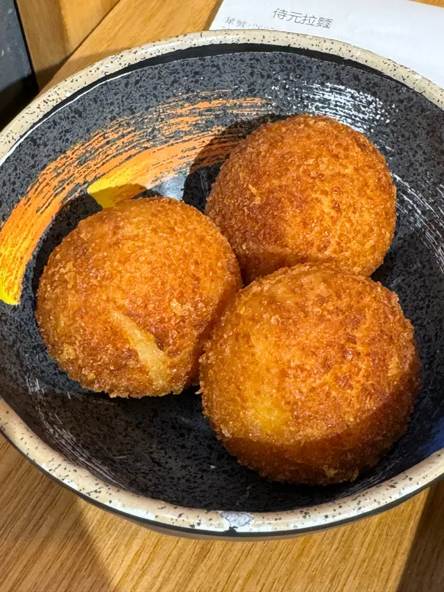 。本來叫芝士蝦餅,但係冇,所以叫咗南瓜餅。南瓜餅炸得好脆,熱嘞嘞嘅。入面嘅餡係橙色嘅,但係南瓜味只係有少少,唔夠特出,反而有薯蓉味,仲甜甜哋,應該加咗糖,不過甜度啱啱好,加上我都鍾意薯蓉,所以都鍾意食呢個南瓜餅。…查看更多