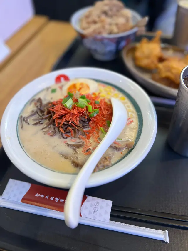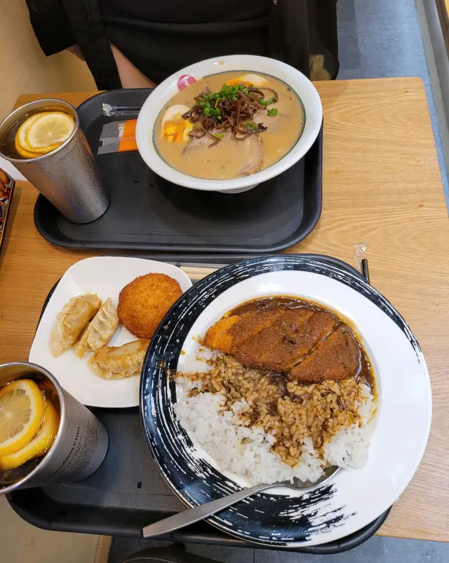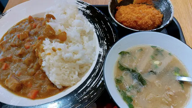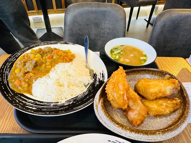 晚飯時間,都有位剩,唔駛等。叫完嘢食,坐低等呼叫器響鬧取餐。等唔係好耐就有得食。本來散叫嘅,但喺收銀介紹餐抵啲。有飯有湯同炸物。餐飲我唔要檸檬茶,因為覺得唔係好夾日式食物,所以改咗要豚肉味噌湯。湯唔太鹹,有好多菜乾同新鮮菜,足料,味到唔錯。豚肉咖哩飯🍛,啲咖哩係食開日本嘅咖哩味,好鍾意食