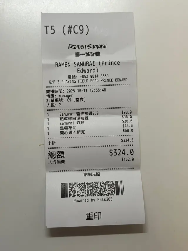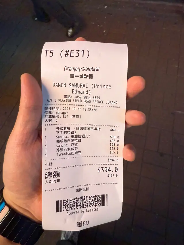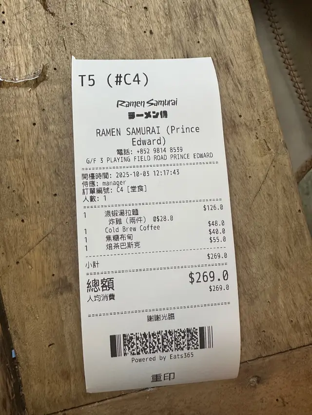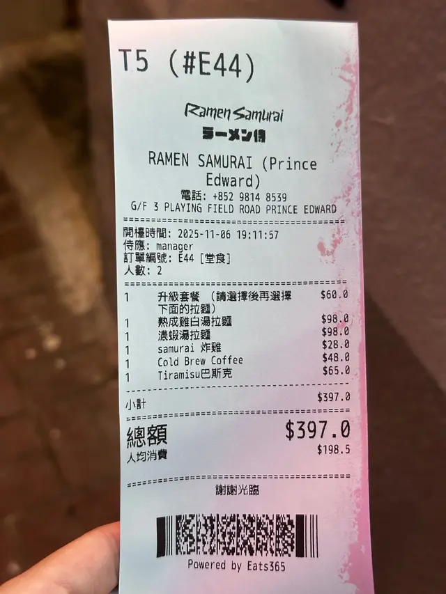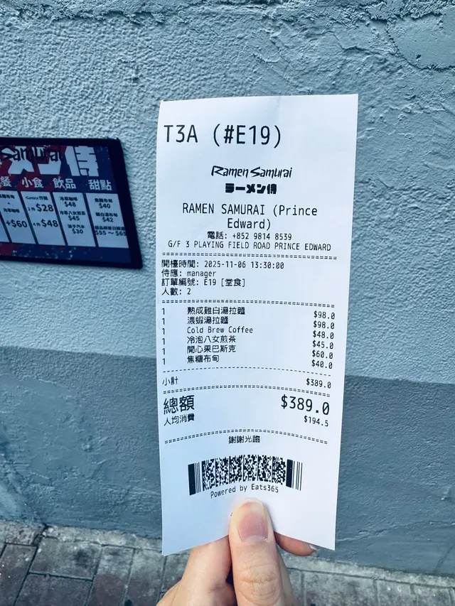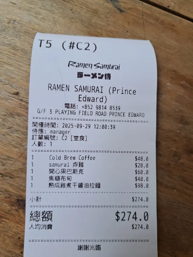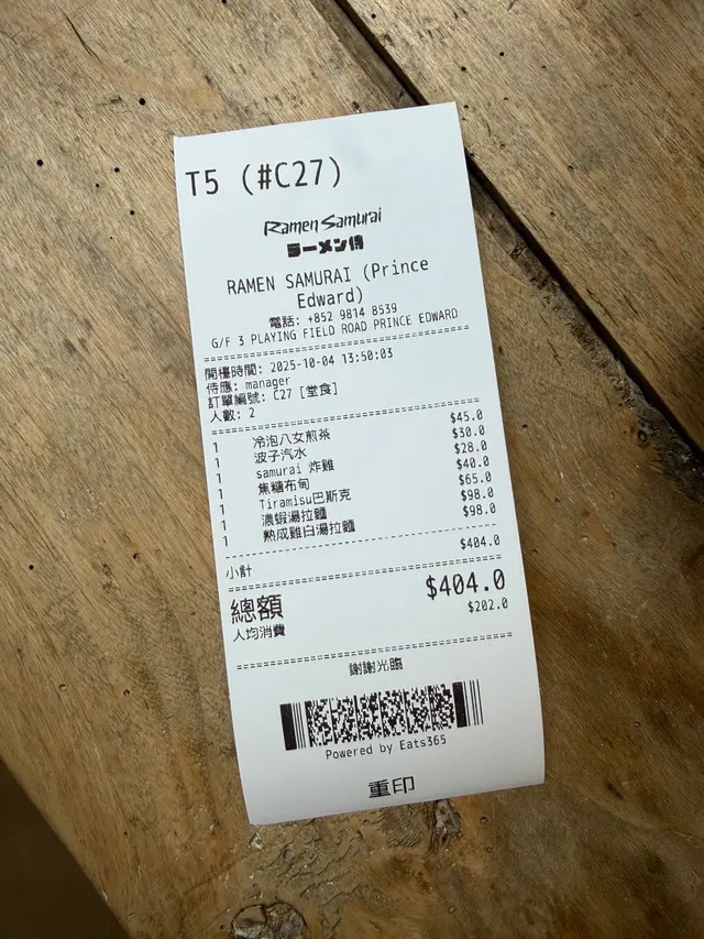 侍拉麵 (太子) 网址: https://s.openrice.com/QrLS0o2iF00 地址: 香港太子運動場道3號地舖