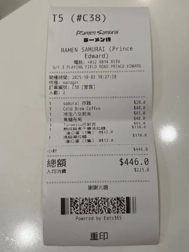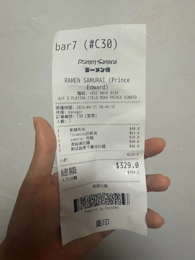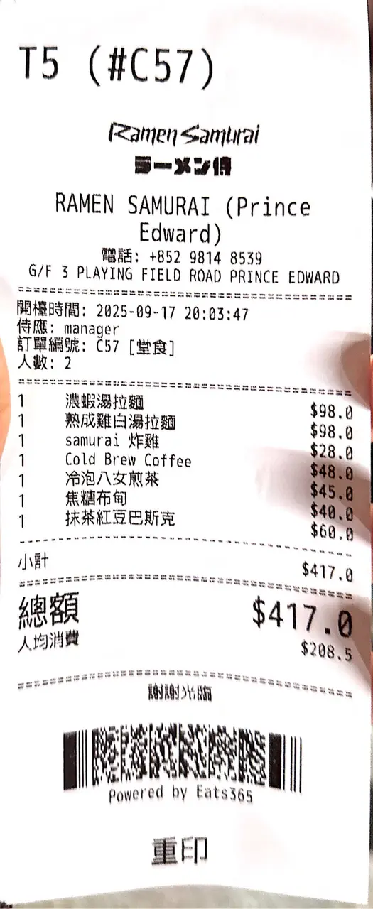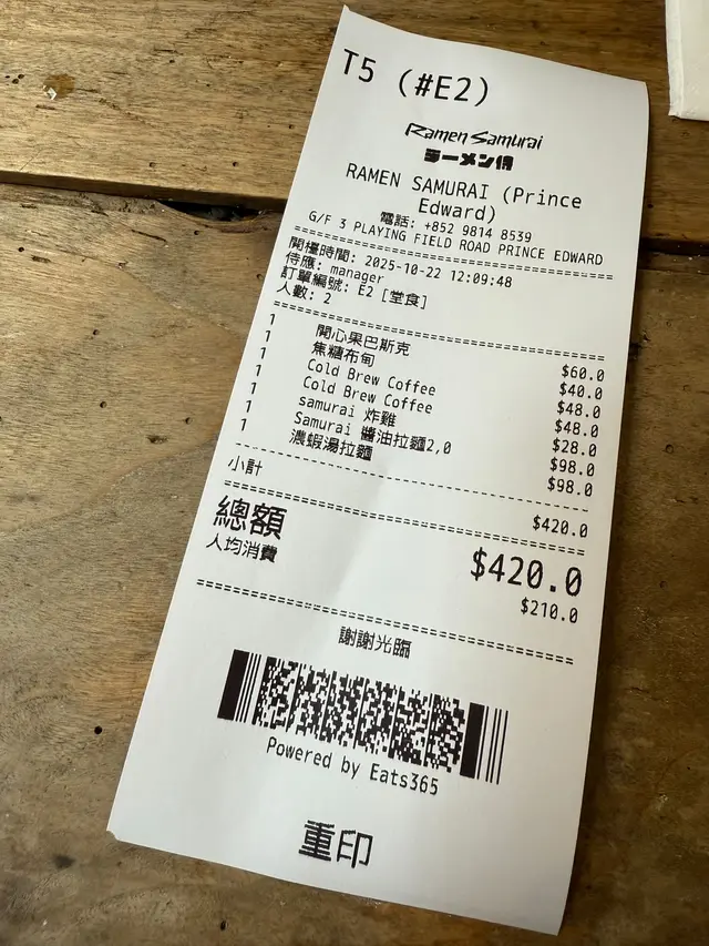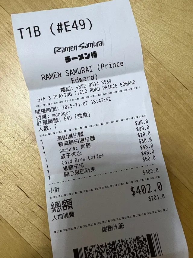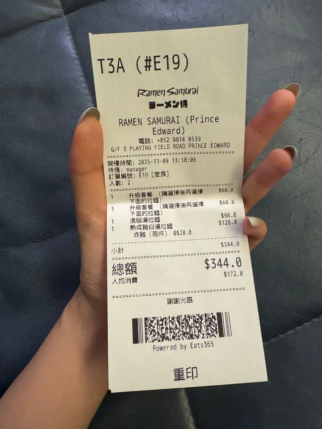 侍拉麵 (太子) 网址: https://s.openrice.com/QrLS0o2iF00 地址: 香港太子運動場道3號地舖