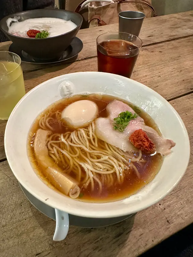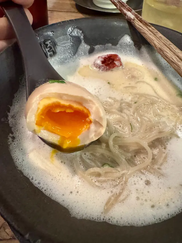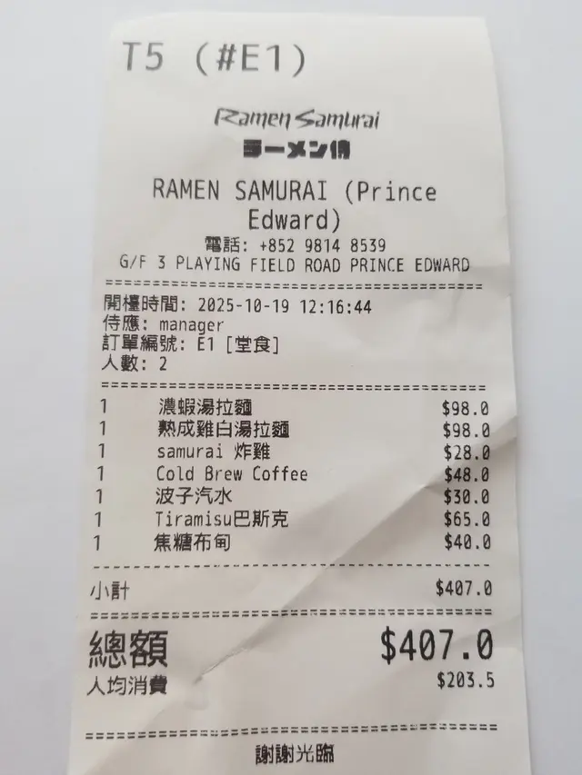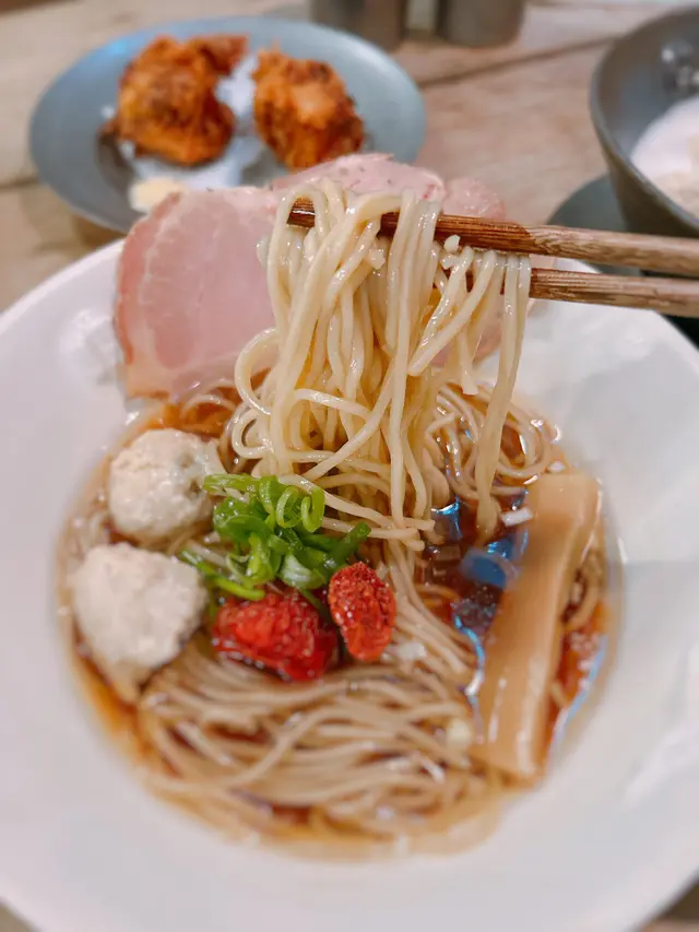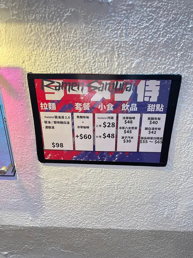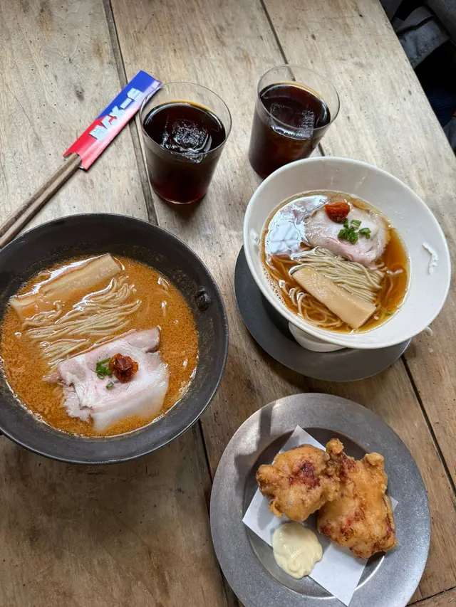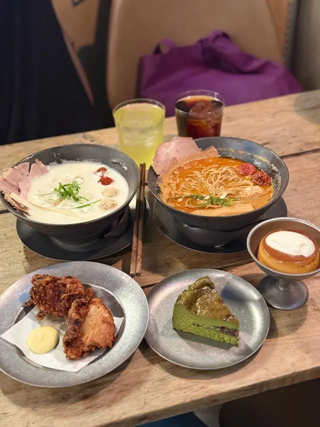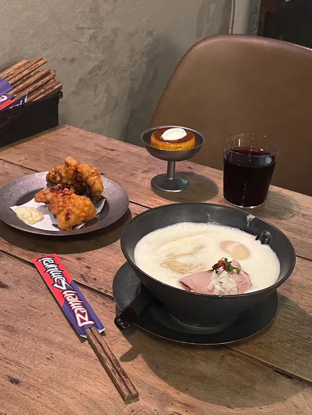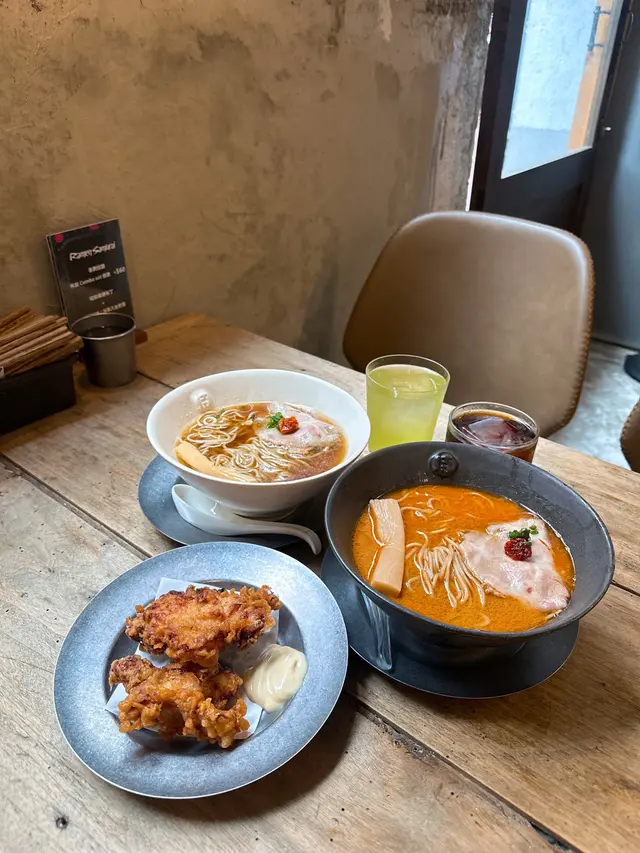由著名店「悄悄食堂」同「頂立拉麵」聯手開嘅新店兩間都係我之前一直想試嘅餐廳🍜拉麵由湯底至麵條同配料都精心炮製,嚴選食材▶️ Samurai 醬油拉麵2.0 ($98)湯底為雙重湯頭,以沙甸魚煮干同雞骨混合而成,充滿精華又唔鹹兩粒脆骨雞丸子充滿肉汁,雞軟骨爽脆油封玻璃豚肉半肥瘦🐷風乾小茄一咬爆汁鮮甜溏心蛋 (+$12) 入味,熟度啱啱好🥚麵質偏幼身,比較爽口而非彈牙 (自己會鍾意煙韌啲hehe),不過好索湯🍜▶️ 熟成雞白湯拉麵 ($98)湯底奶白色,雞湯味濃,不過未去到我覺得好驚艷😗其他配料同上面一模一樣同樣加咗溏心蛋 (+$12) ▶️ Samurai炸雞($28/兩件)呢個必叫,接近拳頭咁大外皮炸粉偏薄,似fish and chips嗰隻放耐咗仍然咁香脆入面啖啖雞肉,口感嫩滑🍗加少少蛋黃醬已經好食▶️ 焦糖布甸 ($40)幾香雲呢拿味,布甸入口細緻焦糖醬會偏甜少少🍮朋友鍾意呢個▶️ Tiramisu巴斯克 ($65)呢個組合有驚喜!上面Tiramisu海綿蛋糕加mascapone,入口順滑,rum酒味重佈滿可可粉🍫底部係厚實嘅巴斯克蛋糕,咖啡味勁出,好似cappucino咁☕️加埋一齊唔會感覺太Heavy▶️ 冷泡八女煎茶 ($45x2)-除咗品嚐拉麵,千祈唔好錯過甜品🍮服務好,店員好細心上菜快手而且貼近客人需要位置超方便,太子站D出口隔籬就係採用水泥風同尼龍燈,門面有啲台灣feel🤣店內環境舒服,樓底高,內裏裝修同燈光俾人感覺休閑價錢唔貴,$200/人,每人一個拉麵、飲品、甜品,仲有小食✨…查看更多