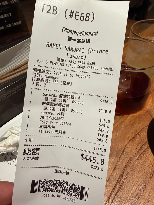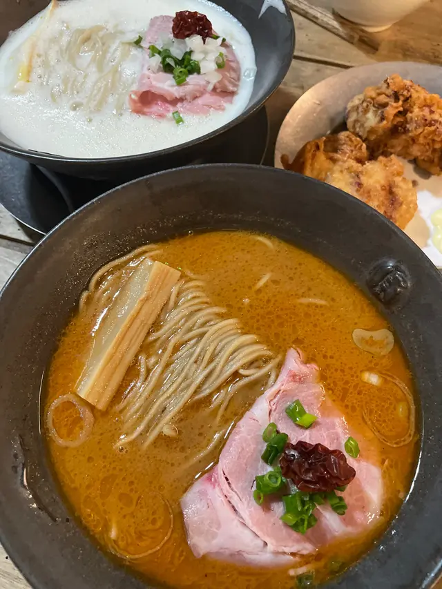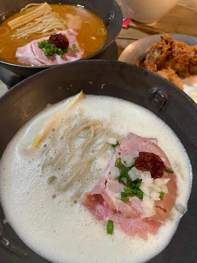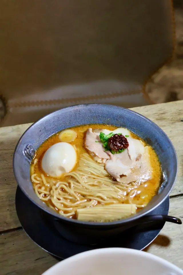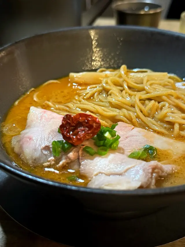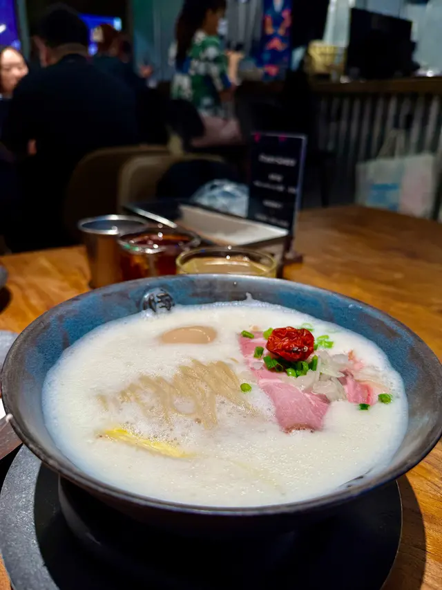 侍拉麵,位於太子地鐵站一出10步就到🤣極度方便,裝修走深色工業風,幾有味道嘅🤞🏻坐位都幾舒服,店員件制服幾靚,服務都幾唔錯會細心介紹😁選擇唔算好多,就係專心做好幾款,主打當然係拉麵🍜Samurai 醬油拉麵2.0🤺2.0原來係經由日本名拉麵店Ramen Feel 渡邊大介師傳的技術傳授,湯頭由沙甸魚同雞骨熬成,聽到都吸引😍醬油Tare都用左4種來自日本既生醬油製作,心機依啲嘢🤯先飲湯,飲落舒服,真係濃得嚟好有風味,係有層次嘅味道,配埋幼身麵一流🥳溏心蛋真流心,加埋啲湯食好爽😋飲啖冷泡八女煎茶,茶味出奇地清濃,可以去膩感,Cold Brew Coffee,少少酸,唔會太濃,好香好味👍🏻熟成雞白湯拉麵🐣個湯底濃到起泡,好白好黏🤩一飲落去超濃,雞味好正,但又唔會好鹹,配埋啲麵食,一啖麵一啖湯勁濃味、勁好味🤤慢煮西班牙黑豚梅叉燒,肉質嫩滑,配雞湯個肉味更加出👍🏻雞肉丸子口感特別,都好味,Samurai 炸雞,爆肉汁,個調味做得好好😌甜品時間🍧焦糖布甸,唔太甜幾好味,Tiramisu巴斯克,朱古力味酒味濃,正😎著重每一個細節既拉麵店,依個就係好味同有層次既分別🥺高質既拉麵,甜品小食都出色,推薦!🫶🏻…查看更多