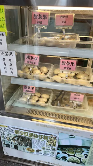 土瓜湾旧区中心,有不少传统舖头。 呢间就主打传统中式糕点、茶果、砵仔糕等等。茶果有多种口味,咸甜都有。 咸既有菜甫虾米同眉豆虾米。 茶果质感烟韧。 菜脯虾米味道较特出,菜脯既爽夹埋茶果即烟韧口感较丰富。 而眉豆就比较重豆蓉味,整体上较淋身,喜唔喜欢见仁见智。 甜茶果有花生、奶黄、芝麻、红豆等等选择。 加入甜馅料,相比口味较传统既咸茶果,较少沉重感。糕点方面,西米糕、红豆糕等等,甜量适中。呢类传统糕点店,而家可能越嚟越少。 唔好等佢唔做先嚟帮衬。