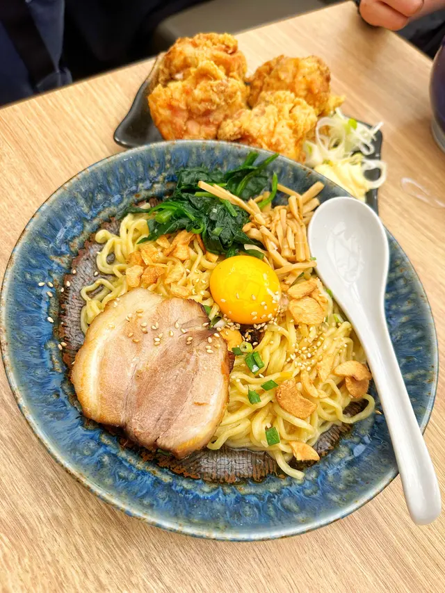 我去到一間排隊店試咗幾款招牌美食,真係驚喜連連!首先,特製撈麵絕對係一道出色嘅選擇。麵本身帶有濃厚嘅蛋香,加上生蛋同特製醬汁,撈起嚟嘅口感真係令人驚艷。而最令我意想不到嘅係麵裡面嘅菠菜,佢帶來一份清新嘅感覺,為整碗撈麵增添了一絲特別的風味。另外一碗黑蒜油拉麵更加令我迷戀。黑蒜嘅香味散發出來,令人著迷不已。拉麵本身質感細緻,每一口都帶來濃郁嘅湯汁和彈牙的麵條,讓人回味無窮。加上後面那拳頭般大塊嘅炸雞,真係令人欲罷不能。而附帶嘅日本大蔥碎更加提升了炸雞嘅味道,令整個組合更加完美。查看更多