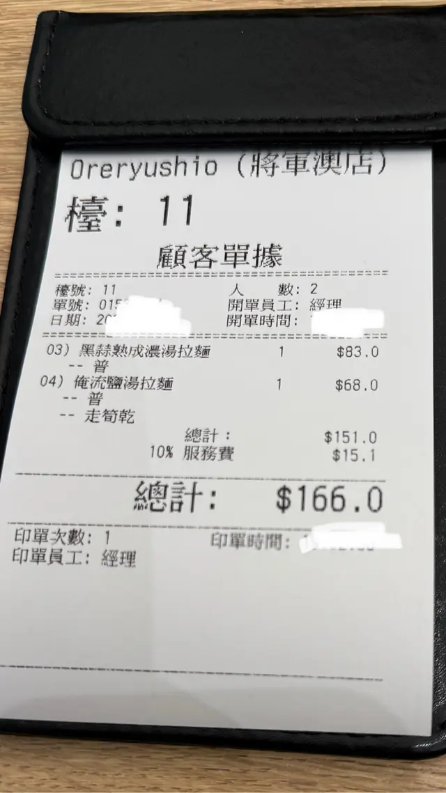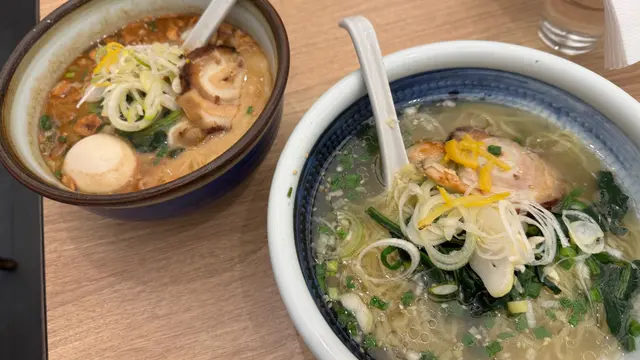 - 黑蒜熟成濃湯拉麵 $83- 俺流濃湯拉麵 $68間唔中經過呢間拉麵店 見到都唔少人食 未諗到食咩又唔係太肚餓就揀咗呢間 排隊等咗一陣先有位我揀咗俺流濃湯拉麵 呢碗價錢幾抵食 唔係淨係齋拉麵 都會有塊叉燒 不過就冇溏心蛋同埋食落拉麵掛唔到湯 湯底比較淡 拉麵屬於幼身 麵可以揀軟硬度朋友就揀咗黑蒜熟成濃湯拉麵 黑蒜味可以再重啲 相對呢碗湯底係濃郁啲 溏心蛋唔錯 但叉燒有啲普通同肉嘅份量有啲少 男士食一碗可能未必夠飽可以一試但未必會再encore💰$166查看更多