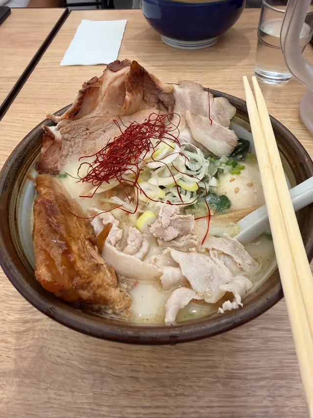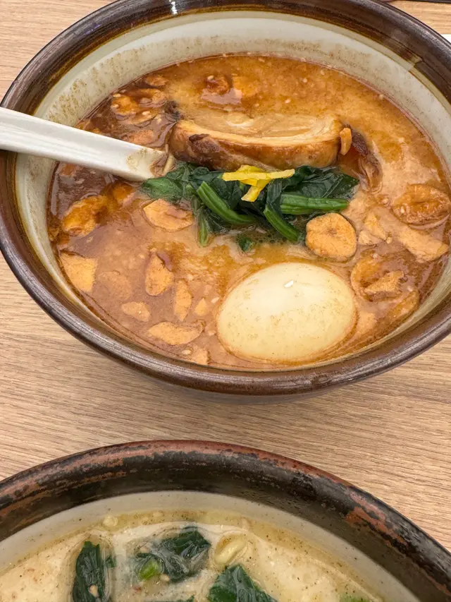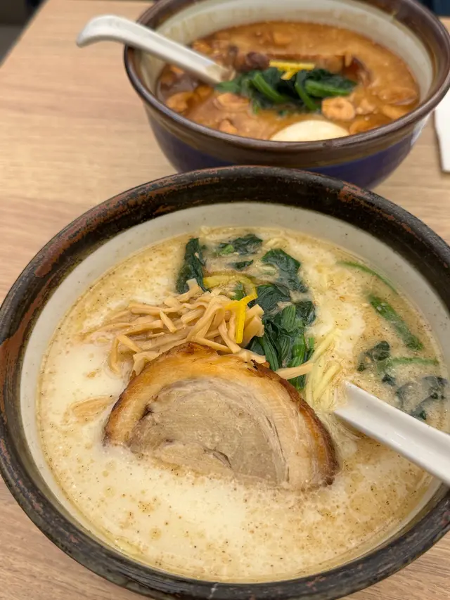 🍜黑蒜油熟成濃湯拉麵🐱 係坑口如果想食拉麵都有幾間揀,俺流塩係最好食果間,價錢正常價位,姊嗌尼碗$83 。週未夜晚需要排隊,姊梗係揀平日食喇!哈!尼間d 麵都可以揀鐘意既硬度,除左湯底,麵質就係碗拉麵既靈魂,所以有得揀好重要,正所謂做人最緊要有得揀。嗌得濃湯,個湯底好濃厚,黑蒜味好出,無令人失望。佢舊腩肉係厚身,見到一層脂肪一層肉咁,脂肪同肉既比例做到入口鬆軟,又唔油膩,厚身令每啖都好滿足。其實除左拉麵,尼度既唐揚炸雞都好好食,炸醬唔厚,調味恰到好處,最緊要上枱仲係熱到辣嘴既程度,記得都嗌黎試下。姊今次就唔記得影炸雞相🥲📍俺流塩らーめん (東港城) (將軍澳)將軍澳坑口重華路8號東港城2樓227號舖查看更多