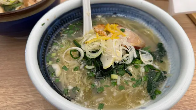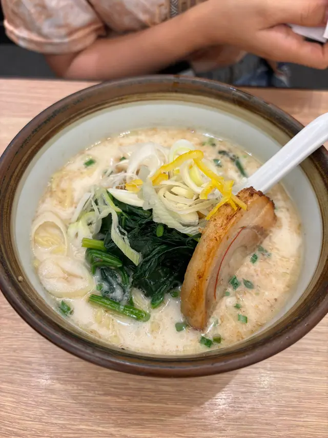 放lunch突然想食拉麵,估唔到呢間拉麵都幾高質。鍾意黑蒜唔可以錯過。黑蒜油熟成濃湯拉麵成!碗!都!係!炸!蒜!真係勁香炸蒜味道,加上佢湯底係黑蒜,所以佢個蒜味比起一般拉麵更加出,每啖都連埋一齊食,好香口。叉燒又好厚切,食得出佢燒過嘅味道,肉味好豐富。佢仲係一層脂肪一齊肉,所以,能夠做到入口即溶嘅效果!雞蛋都做到溏心嘅效果,慢慢品嘗。京蔥味好香,帶出咗湯底味,係好好嘅配料。最特別係佢喺面撒咗一啲柚子皮,超級香,就咁食仲有一種Frenshening嘅感覺!查看更多