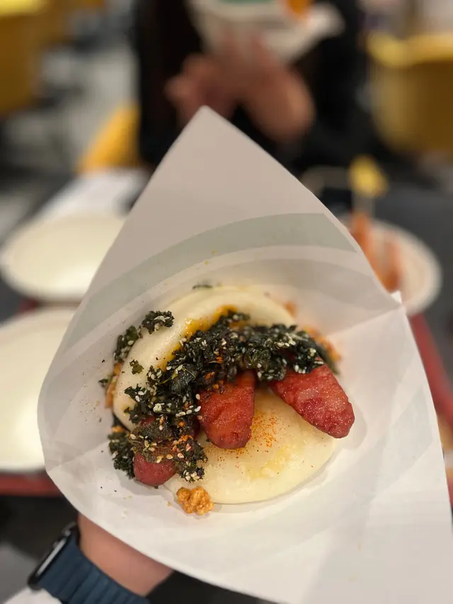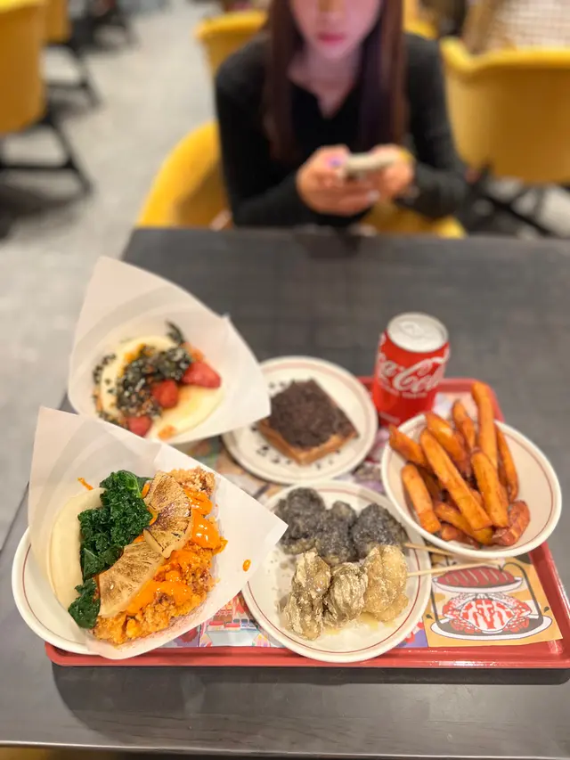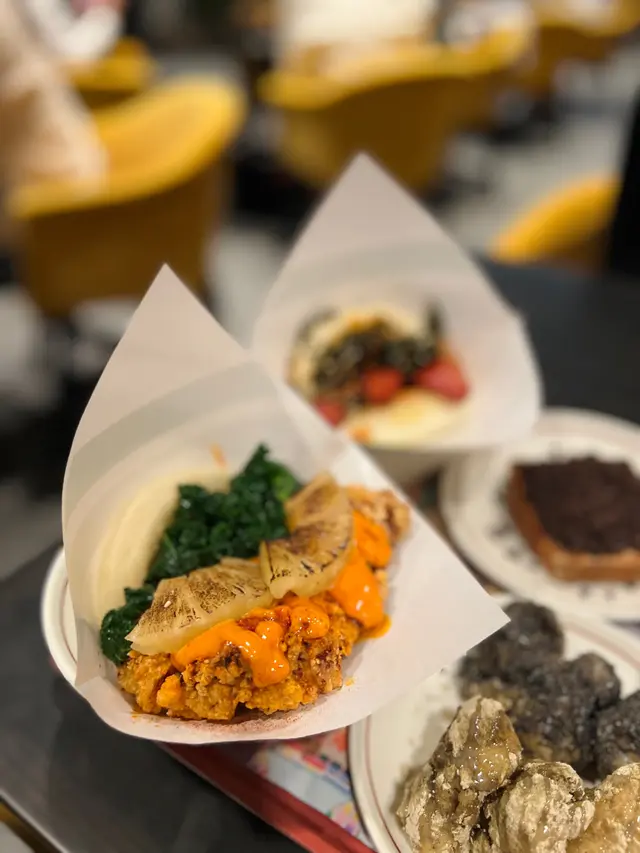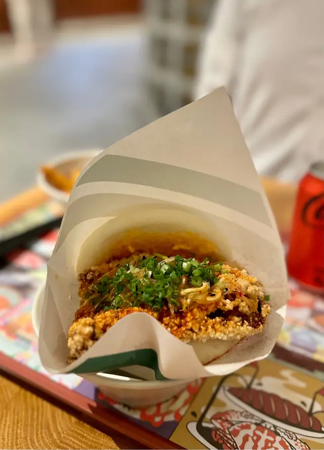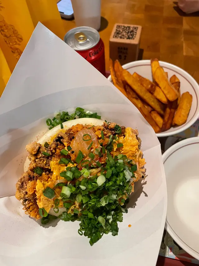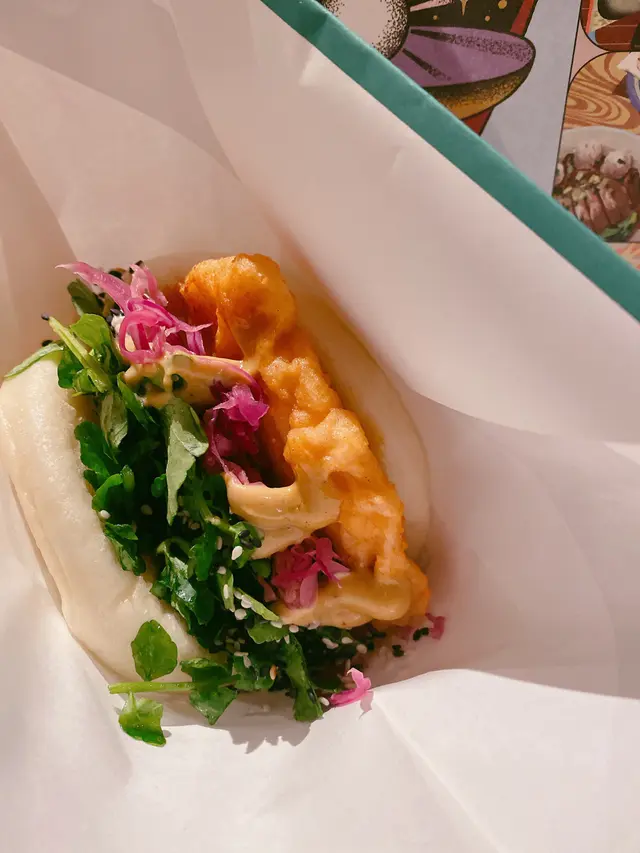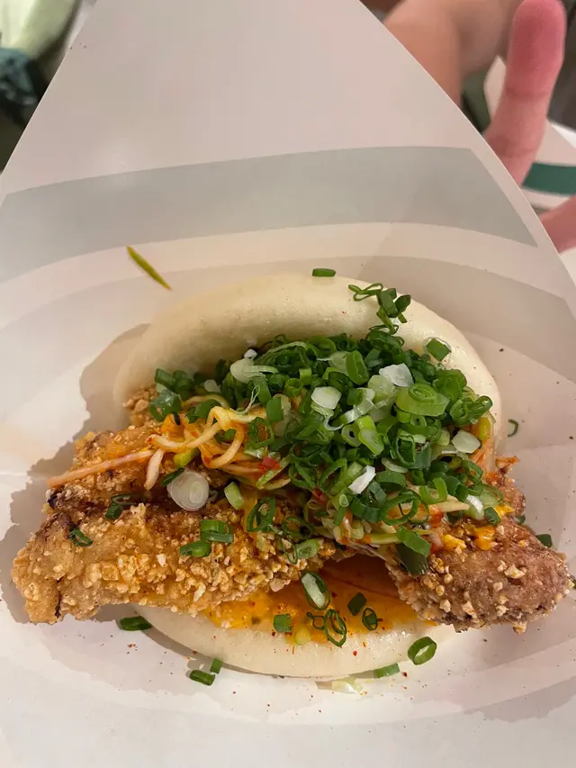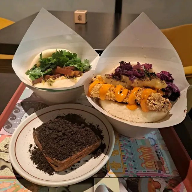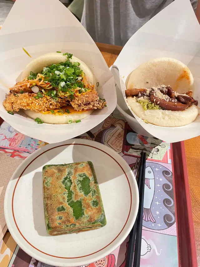 Bookmarked this store with my student and went here with her!.We got Deep Fried Hot Chicken with Grilled Pineapple Gua Bao, Traditional Pork Belly Gua Bao and Tiramisu Press Cake with Oreo Crunch to share. The Deep Fried Hot Chicken with Grilled Pineapple Gua Bao included fried chicken, grilled pineapple, kale and garlic vinegar, spicy mayo and sour jam. The fried chicken was super crispy, meaty and juicy, its saltiness complemented the sweetness of the grilled pineapple nicely. The spicy sauce elevated its savoury. The Traditional Pork Belly Gua Bao included braised pork belly, peanut, coriander, yuzu paste and fragmented vegetables. The pork belly was tender, which was enjoyable to have with the soft bao, esp when the fat of the pork belly sipped to the bao. The fragmented vegetables and yuzu paste reduced the greasiness of the pork belly. The Tiramisu Press Cake with Oreo Crunch was an evil dessert. Topped with oreo crunch, the dessert was filled with coffee and cheese. When we cut it, its interior overflew, making it very satisfying to have esp when it was hot. .The store was originally in Jardine House's BaseHall, which is a comfortable and neat food court. Sadly it was closed, as their food was really outstanding and memorable🥹... Now they only have a shop in Yuen Long. …查看更多
