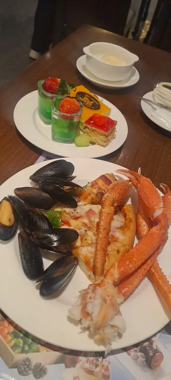 I ate at the buffet here a long time ago, and I thought the atmosphere was great; there were so many people enjoying the buffet.They've already set up Christmas decorations!🎁🎄The frozen seafood here is convenient. I especially liked the blue mussels because they were sweet and delicious—I thought they were even better than the frozen crab with legs!