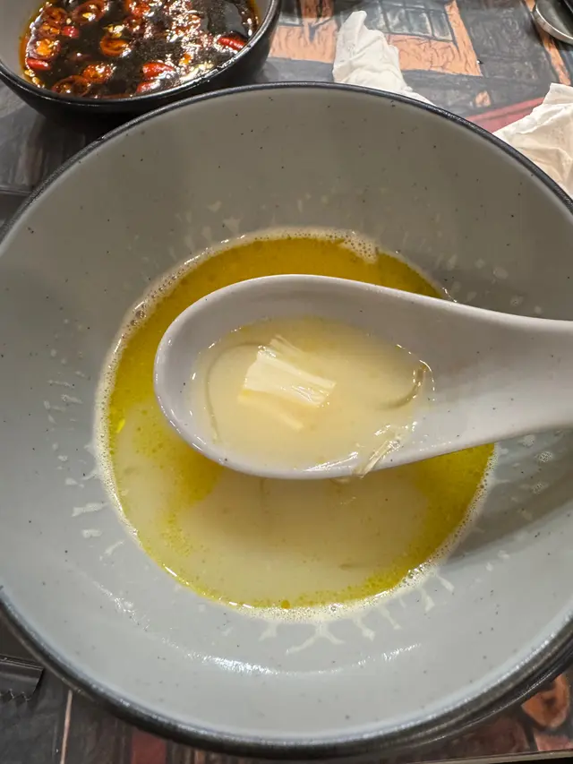 好多隻既雞 煲出黎既湯,勁好飲,勁濃,完全冇味精,飲曬同食完都吾會口渴食物都好新鮮,配料都係鋪頭手工即整,有料到,同平時出面既火鍋吾同職員好nice,會介紹啲湯底係冇味精可以飲左先再慢慢加湯打邊爐,鋪頭都好乾淨,會不停幫手清雞骨同枱面,又吾會趕人走,坐得好舒服最抵讚係廁所,雖然係外面,但係佢地鋪頭私家,會有姐姐清潔,勁乾淨,完全放心吹水吾洗去好遠搵廁所竹笙花膠雞湯翅👍🏻👍🏻👍🏻手切牛好新鮮👍🏻手打丸都好好食,夠彈牙👍🏻炸蝦滑油炸鬼吾油,岩岩好👍🏻響鈴新鮮炸小店有hard💪🏻,滿意既一餐…查看更多