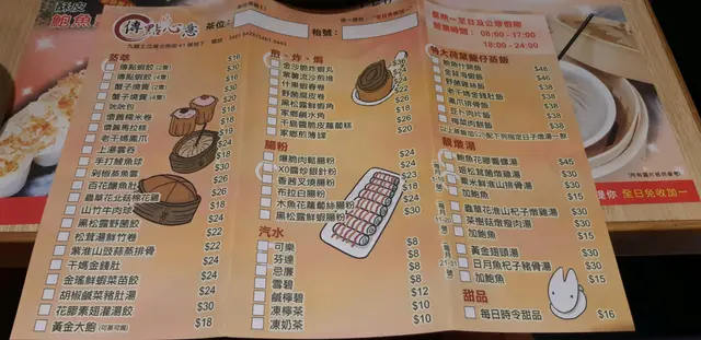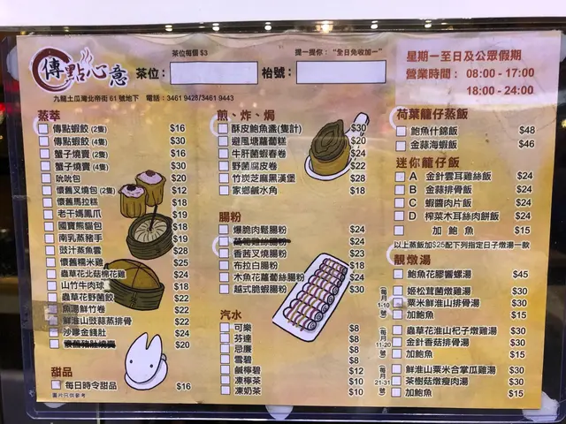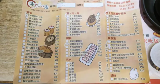 這土瓜灣小點心館,似乎已存在了好一陣子。不過通常被一排紅van遮擋了,除非走路經過,就會注意到它的存在。座位雖不多,侍應(應是老闆娘)很週到,岀品速度也能配合。侍應會注意到人客多的時候,主動調大空調,所以我們懷疑她是老闆娘。點心皮方面,首先注意到的是蝦餃皮。沒有市面一般的造得透明,一看以為造得比較厚,但原來不是,就只是沒那麼透明,剛蒸好夾起來也不黏,入口也不糊,很薄的皮,高手!餡料方面,蔬菜十分新鮮,蝦很彈口,大隻而有蝦味。再看雜菌餃,皮就造得很透明了,同樣不黏不散。所以師傅是能造出透明皮的,只是視乎有沒有那個需要。同樣,餡料中的蔬菜極盡新鮮,是脆口的!木魚絲蘿蔔絲腸粉,口感很豐富,脆及滑,而味覺也很豐富。是必試的一絕。鮮竹卷與腐皮卷就像是一個產品的兩個形態,都做得很有水準,大前題是用的蔬菜很新鮮,都是脆爽彈口的!值得一提的,是傳點心意的鮮竹卷,中部是沒有凹陷的,即餡料填得滿滿的。很盡興的一次飲茶。取價很公道,吃了六款點心,才百元多一點。茶錢每位收六元,提供的像是玄米茶味道的茶,比很多點心店的都強。以傳點心意的位置、服務、岀品,我們絕對有信心,它會繼續存在好一陣子。好‼️查看更多