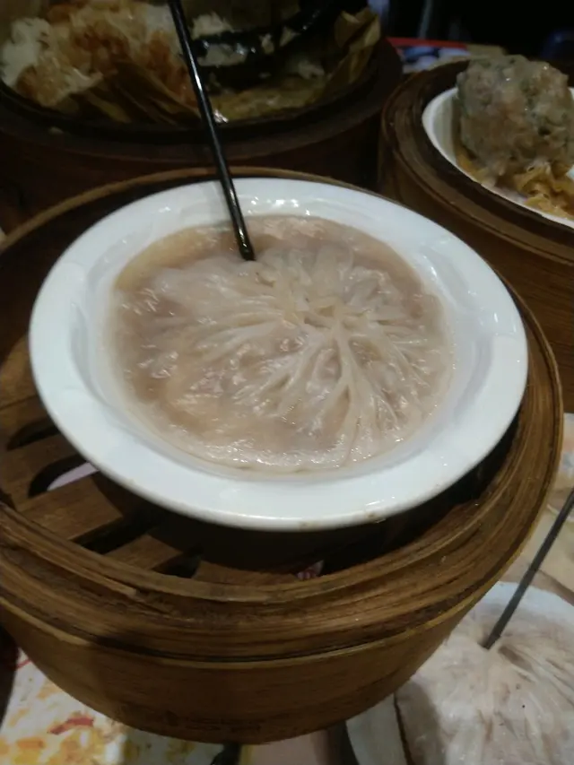 今日約左朋友傾計,佢介紹尼間幾好食。咁我就話ok,食點心傾計都唔錯。去到唔洗等位就有位坐,都幾快。坐低無耐就有職員斟茶比我地飲,服務唔錯。黎左個咸魚肉餅荷葉飯,幾大個同好香添~蘿蔔絲腸粉(唔記得個名)尼個值得推薦,超級好味~咬落去外面腸粉薄皮外軟,內裡的蘿蔔絲香脆可口,整體好好食呀!!我好喜歡,就算最後好飽都要食晒佢~尼間店幾好,可以淨係叫2粒燒賣,咁就可以食多d唔同種類既野食,間野咁樣諗,真係唔錯。尼粒燒賣好好食,雖然賣相怪怪地,但食落去又幾好食,不錯。2隻蝦餃尼粒蝦餃大大粒,又好食~唔錯~個名叫吮吮包,佢地話類似小籠包,但係係大版本。黎到仲有支飲管比客吸住飲入面d湯汁之後再食裡面既肉,感覺幾有諗頭。賣相相當吸引,好特別~不過我試完後,還是覺得小小的小籠包好食d。因為就係大個得制,唔知點食,雖然話吸晒入面D湯汁先。。。但如果吸晒湯汁,淨番裡面D肉就咁食又唔見得好食~加上好熱。。。好難就咁啜。。。其實食落好唔方面。。。唔建議食尼個。。。。查看更多