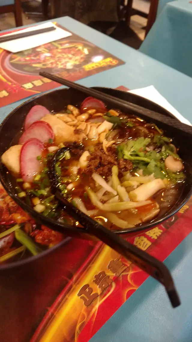 經過樓下見佢新出一人一煲,仲要麻辣味,最愛辣嘅我點會放過同朋友share左一個邊爐加多半隻口水雞,份量有d多,建議2個女仔可以叫例牌就夠。湯底一上,陣陣辣味,花椒八角樣樣齊配料選擇多,份量一般。有木耳,蘿蔔,魚片鮫,菜,薯粉,粟米。蘿蔔煮耐左一夾就爛,但吸收左湯嘅辣味,令人食上癮😍😍😍辣味尚可,唔會太辣,薯粉加入口水雞d汁到味道一流。牛肉食落有羊肉味,有d怪。魚片反而有驚喜,幾厚,可惜得2塊。但食完之後痾左2日。查看更多