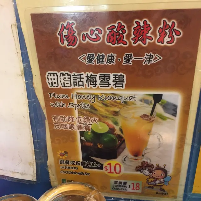 位於登打士街的傷心酸辣粉,質素十分高,個人最喜愛這分店的紅薯粉。點了一客口水雞酸辣粉套餐,酸辣粉和口水雞也是bb辣。十分鐘後,便來了,紅薯粉今次煮得熟透,很合我的口味,湯底也十分不錯。之前吃過其他分店的,紅薯粉略嫌煮得不夠長時間,咬不斷,吃完後肚子有少許消化不良。口水雞下了不少芝麻,入口很香滑,是次雞煮得有少許未熟透,有一兩件末端有少許紅色,沾滿了辣油的花生也很滋味。涷檸茶和小食花枝丸的味道則正常。小提示:如果是第一次試傷心酸辣粉,建議先從bb辣/小辣試起。本身自己不是愛辣之人,所以bb辣的辣度已經很足夠。 查看更多