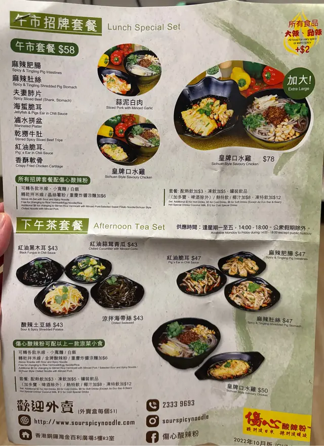 突然好想食下辣嘢,就谂起伤心酸辣粉,觉得环境比其他分店舒适😚🍽️用餐人数:2❗️❗️系楼下拎咗张宣传单张写住套餐送芋圆西米露,最后❗️货不对板❗️送雪耳红枣糖水,个人觉得呢一点好差🙁▪️二人套餐$192-酸辣米线|薯粉份量好足,米线挂汁容易断,薯粉好有咬口弹牙,啲花生香脆好好味😋有肉碎同榨菜味道好丰富-口水鸡辣嘅程度啱啱好,因为系冻嘅唔会有越食越辣嘅情况,鸡皮都算唔会好肥,鸡肉食落肉质比较实净,如果钟意滑嫩口感嘅朋友仔唔建议嗌😗-土豆丝土豆丝酸辣味道平衡的好,唔会有辣味/酸味突出嘅情况,而且土豆丝系爽脆口感嘅-香酥软骨炸得好香,一上枱就热辣辣,咬开入面都有啲juicy,可能食惯点沙律酱嘅软骨,所以呢个比较甜啲嘅酱觉得还好,都会钟意唔点酱就咁食🙈…查看更多