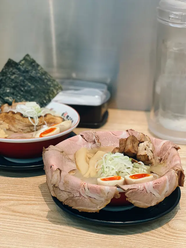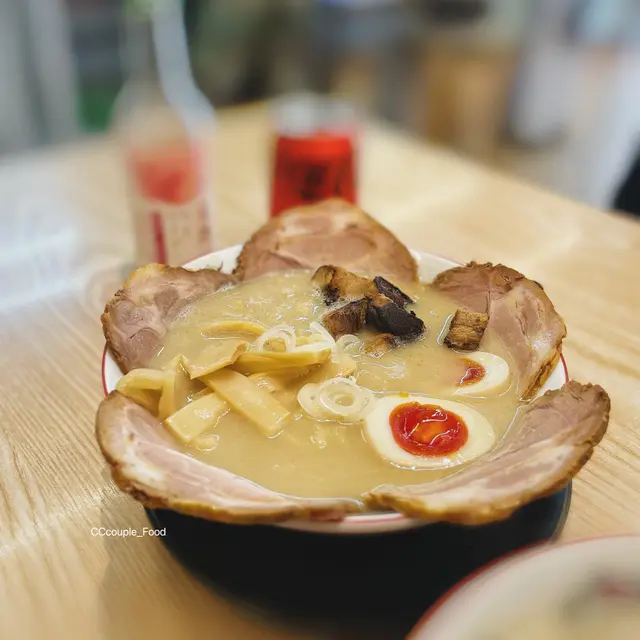 我地隨便係open rice 揀左呢間拉麵店既尖沙咀分店去食,交通地點比較唔方便要行10-15分鐘。💸$350 💁🏼♀️人均$100-200不等整體食物評價:★ ★ ★ ★ ☆ 拉面既湯底都唔錯,麵底都係有彈性,會有咬口😆。服務態度:★ ★ ★ ★ ☆服務員都好細心,會主動提供碗碟同提供暖水果陣都會好心提醒睇熱🥹但餐廳佢地係免加一。環境氣氛:★ ★ ★ ☆ ☆環境就同一般拉麵店設計差不多。🥯食物方面肉愛食者拉麵+麵底(豚骨濃湯醬油湯底+辛味醬)辣味湯底令人覺得開胃,想繼續食落去既感覺,呢款拉麵賣點係真係超多叉燒,真心會食唔哂再加個麵底。😂😂😂炸餃子🥟係平時會食到既日式餃子,但佢用炸既方式令餃子變得脆身,如果吸下油會好d ,食落油膩感少重🤏🏼。特選拉麵(豚骨濃湯醬油湯底)呢款拉麵特點係有條好長既火炙叉燒,叉燒切得好薄,唔會太過厚而覺得難咬,有好香既炙燒味配埋醬油湯底岩岩好,湯底麵有濃既豬骨湯味但唔會覺得好咸🥹。☕️飲品方面,叫左兩隻日本牌子既梳打都係比較少見到。柚子梳打呢隻梳打比較冇咁甜,酸甜既味令人開胃d🤤哈蜜瓜梳打呢隻梳打偏甜,但飲落唔會話太膠既哈蜜瓜味🤔,👩🏼個人覺得麻麻。…查看更多