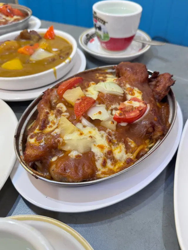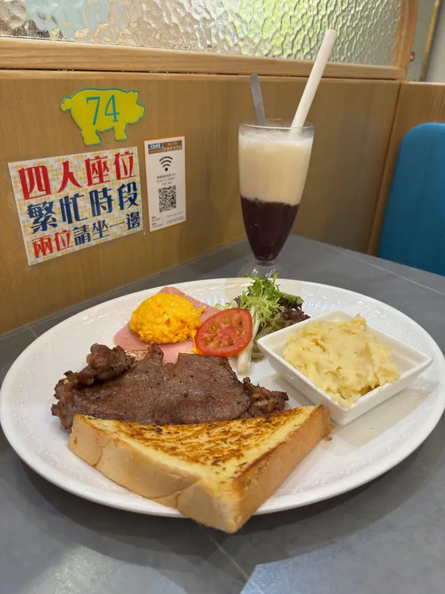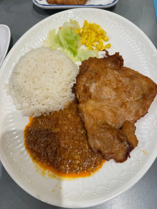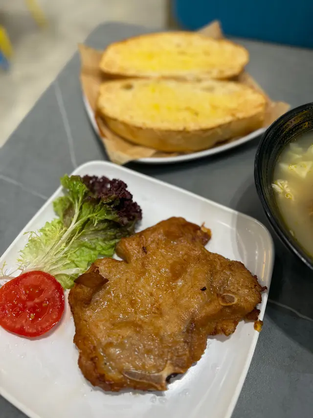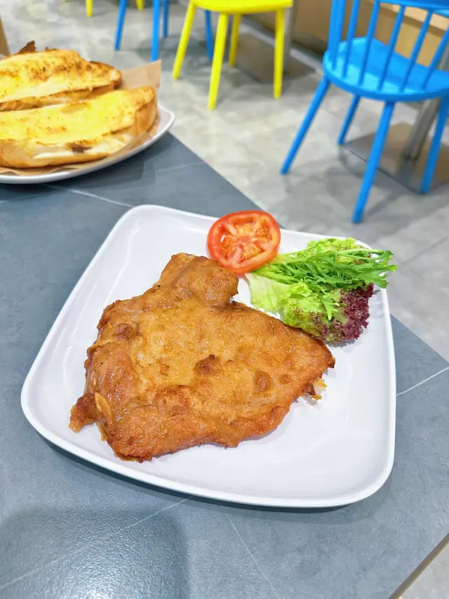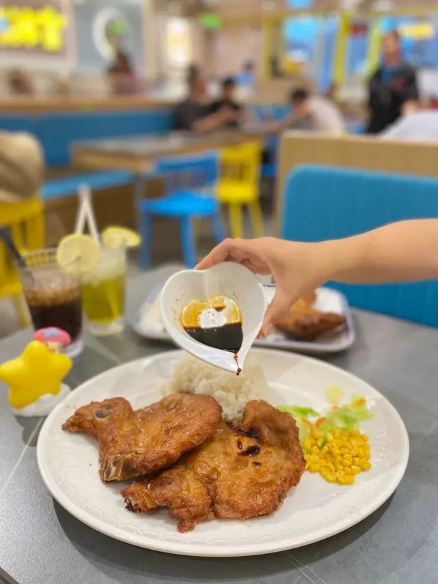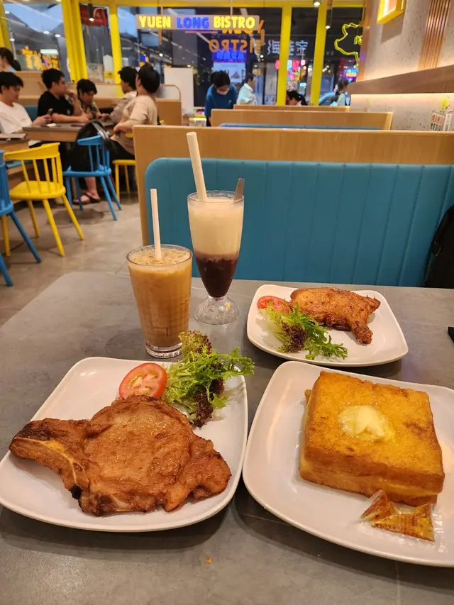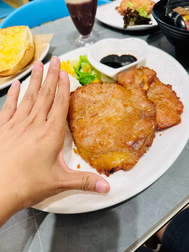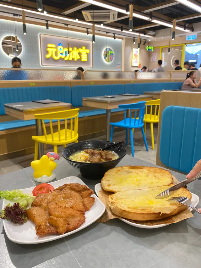 大熱天時35度,帶住小朋友活動完之後,身水身汗,見到附近有元朗冰室,一於入去醫肚。餐廳嘅裝修主要以黃色為主,感覺精神有活力。打開餐牌,有很多不同嘅選擇,由一般茶餐廳嘅食品,到小朋友喜愛嘅菜式都有,正值下午茶時間,我哋一於試多幾款一齊食。咖喱牛肉意粉牛肉嫩滑彈牙,意粉啖啖掛上香濃嘅咖喱汁,咖喱汁唔算辣,大人小朋友都食到。招牌厚豬扒上枱發現塊豬扒size大過我隻手, 唔單止大,還要是厚厚的。入口香脆啖啖肉,滿滿嘅肉汁,香氣四溢。素菜pizza配薯條是日pizza是素菜口味,上碟時小朋友見到已經心心眼😍,我哋一人一塊,食落有驚喜。批底香脆,配上三色椒及菠蘿,香甜爽口,小朋友食唔夠。和風雞肉披薩 小朋友要encore 🍕, 試埋佢嘅和風雞肉披薩。全個pizza有八件,雞肉配上和風醬,加埋脆脆嘅餅底,一人一件好快又食晒。冰室一口西多士一口西多士外脆內軟,配瀑布煉奶及朱古力醬喺面,切好晒一粒粒size剛剛好,小朋友食到舔舔脷,如果多啲朱古力醬仲正。禾味燒BB鴿外觀色澤光亮,散發着脆皮香氣,入口皮薄肉嫩,配上淮鹽,提升乳鴿口感層次。沙嗲牛肉包嫩滑彈牙嘅牛肉,配上香濃嘅沙嗲醬,再放入剛焗好香脆嘅熱狗包內,入口沙嗲醬滿滿的近乎爆出嚟,夾埋熱狗包吃剛剛好,口感大滿足。鹹魚雞粒炒飯炒飯夠乾身,粒粒分明,配上爆香咗嘅鹹魚粒及雞粒,每一啖都有唔同嘅口感,層次分明,一人一碗好快又K.O. 哂照燒汁鰻魚丼小朋友想食鰻魚,煎香嘅鰻魚面上鋪上厚厚嘅鰻魚汁,香滑綿綿,配上海帶、粟米及配菜,大家表示食完飽飽。總括而言,價錢大眾化,性價比高;夏天熱熱,坐得舒適。小朋友最鍾意食佢個比蕯,絕對係厚切豬扒以外嘅另一小驚喜。…Read More