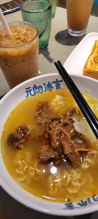 元朗冰室, 布置以浅木色为主调, 简洁明亮, 卡位舒适, 价钱相当亲民, 食物款式选择多元化, 招牌厚猪扒及金牌沙嗲面 , 深受到不少街坊粉丝支持。招牌厚猪扒饭配红豆冰巨型厚切猪扒 , 足足有5cm 厚, 差不多大过我块面, 仲香气四溢, 入口超级松软 ,充满肉汁, 米饭粒粒分明, 充满米香,搭配甜而不腻人气红豆冰,让人感到饱肚和满足。金牌沙爹牛肉煎蛋公仔面沙爹酱香气浓郁, 薄切的牛肉好鲜嫩,煎蛋滑溜, 弹牙的公仔面, 挂满了沙爹味道, 十分惹味, 充满港式地道风味。肥牛猪骨汤乌冬奶白色的猪骨汤底, 醇厚鲜味, 肥牛肥瘦适中, 肥而不腻 , 烟烟靭靭的乌冬吸满汤汁,口感更滑顺美味。香炸鸡髀配沙律刚刚炸起的巨型鸡髀 , 香气十足 , 外皮脆卜卜,鸡髀嫩滑,搭配甜甜酸酸的杂果沙律, 十分开胃, 刚好平衡炸髀的油腻感, 让人食欲大增。全日早餐鱼柳鲜嫩的鱼柳, 外皮炸金黄酥脆, 内里雪白的鱼肉 , 保持湿润滑溜, 再搭配刚烤起方包, 滑嫩的炒蛋及 薯蓉, 材料十分丰富 , 简单却令人愉悦。炸乳鸽即叫即炸的乳鸽 , 乳鸽皮炸至热烫烫,香喷喷, 皮脆肉嫩, 令人百吃不厌。冰室一口西多配冻柠蜜热烫烫厚身的西多士 , 刚好一口一啖 , 表面金黄酥脆, 入口柔软湿润, 蛋香吸引 , 配搭枫糖浆的甜香, 甜蜜诱人的味道。奶油脆猪脆猪烤到十分香脆 , 表面填满甜甜的奶油, 香甜美味,让人一口接一口,停不下来。柠檬利宾纳 , 柠檬菜蜜特饮充满夏日色彩 ,啜一口,清新冰爽, 冰凉透心,炎炎夏日不二之选。…Read More