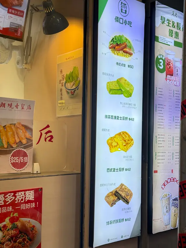今日(1-3-2025 Sat)同老公留肚到12点,嚟帮趁Try the bread(https://www.openrice.com/zh/hongkong/r-try-my-bread-%E8%8D%83%E7%81%A3-%E5%A4%9A%E5%9C%8B%E8%8F%9C-%E6%BC%A2%E5%A0%A1%E5%8C%85-r783238),点知我哋12:36pm嚟到未开门,连半闸都冇拉开,即系连准备都未准备,但我哋肚饿喇,而且要出旺角攞嘢,咁留肚喺旺角食晏,就喺呢一带食住少少嘢先啦。见到栋笃食系开咗,但又似未ready,而见到呢间已有嘢食喇,于是睇睇,我就锁定$30.00嘅烧卖鱼蛋孖宝共14粒,但老公又发现新嘢,就系芝士压饼,佢话想试,咁我哋就要同样$42.00嘅抹茶忌廉芝士同四色芝士各一件,但店员话要等15分钟。咁我哋唔等啦,于是就要我谂𠮶样。店员问要沙爹定咖啡汁?我答沙爹汁,加完就有得食。鱼蛋系白鱼蛋,食落口感较腍,但仍有少少爽。烧卖系香菇猪肉烧卖,口感同样系较腍,但味道OK。而两样都热腾腾,沙爹汁香微辣,啱我。而佢嘅分布系8粒鱼蛋,6粒烧卖。上次食评系2022年1月14日刊登嘅呢篇:https://www.openrice.com/zh/hongkong/review/yeah-%E6%8E%83%E8%A1%97%E4%BB%A3%E9%A3%9F-3-e4302664…查看更多