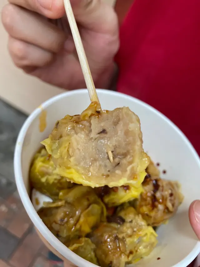 外層燒賣皮薄而韌,咬落去香氣撲鼻,包裹住豬肉同香菇嘅豐富餡料,肉汁多而唔油膩。香菇嘅鮮味同豬肉嘅滑嫩完美融合,每一口都滿足味蕾,絕對係燒賣嘅精品之選。值得一試!另外,佢哋其他小食,例如:脆炸雞皮餃我都係超推介!唔好以為食雞皮就會覺得好油膩,佢哋炸得好脆,同埋咬落去唔會一啖油咁。呢個食法好新奇!仲要咬落去入面係會爆汁!好食得滯,一下子就冇哂。想食小食,又或者同朋友行街口痕,呢度嘅燒賣絕對係唔錯嘅選擇!