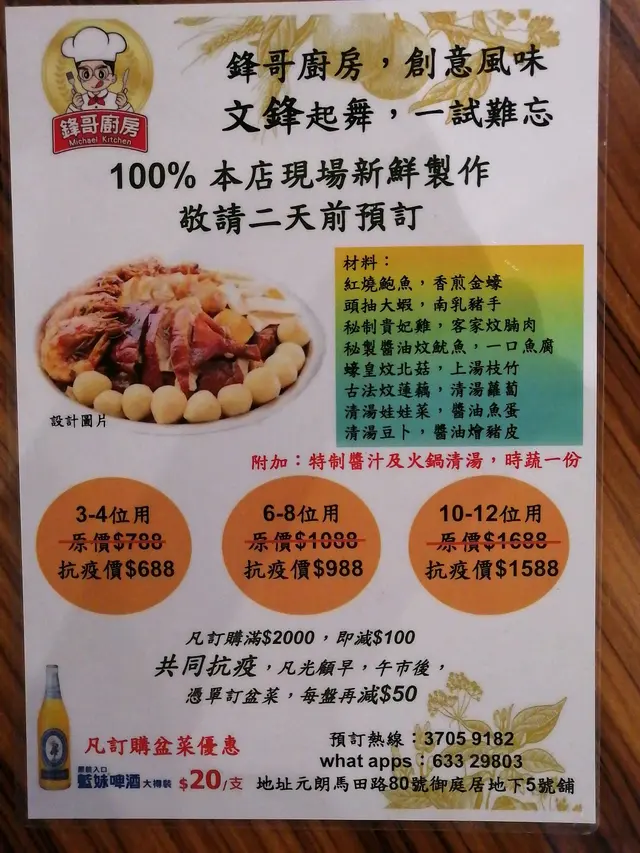 (元朗) (元朗) 网址: https://s.openrice.com/QrLS0uCm900 地址: 香港元朗馬田路80號御庭居地下5號舖 电话: +852 37059182
