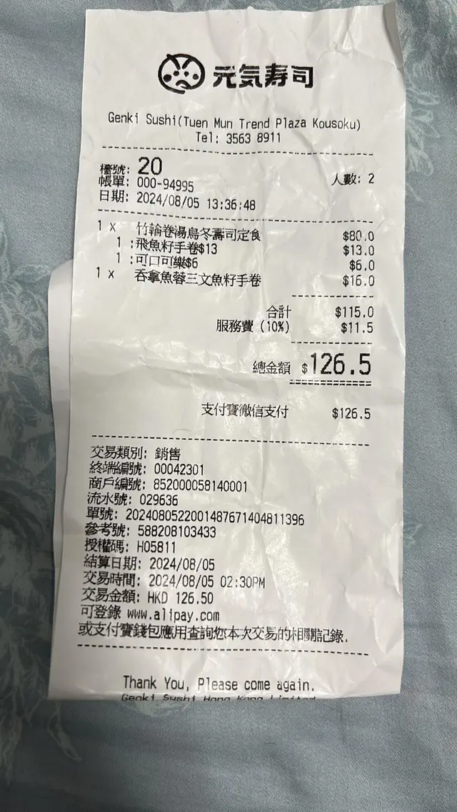 元気寿司 (屯門時代廣場) (屯门) 网址: https://s.openrice.com/QrLS0LBGA00 地址: 香港屯門屯隆街2號屯門時代廣場北翼L1樓33-34號舖 电话: +852 35638911