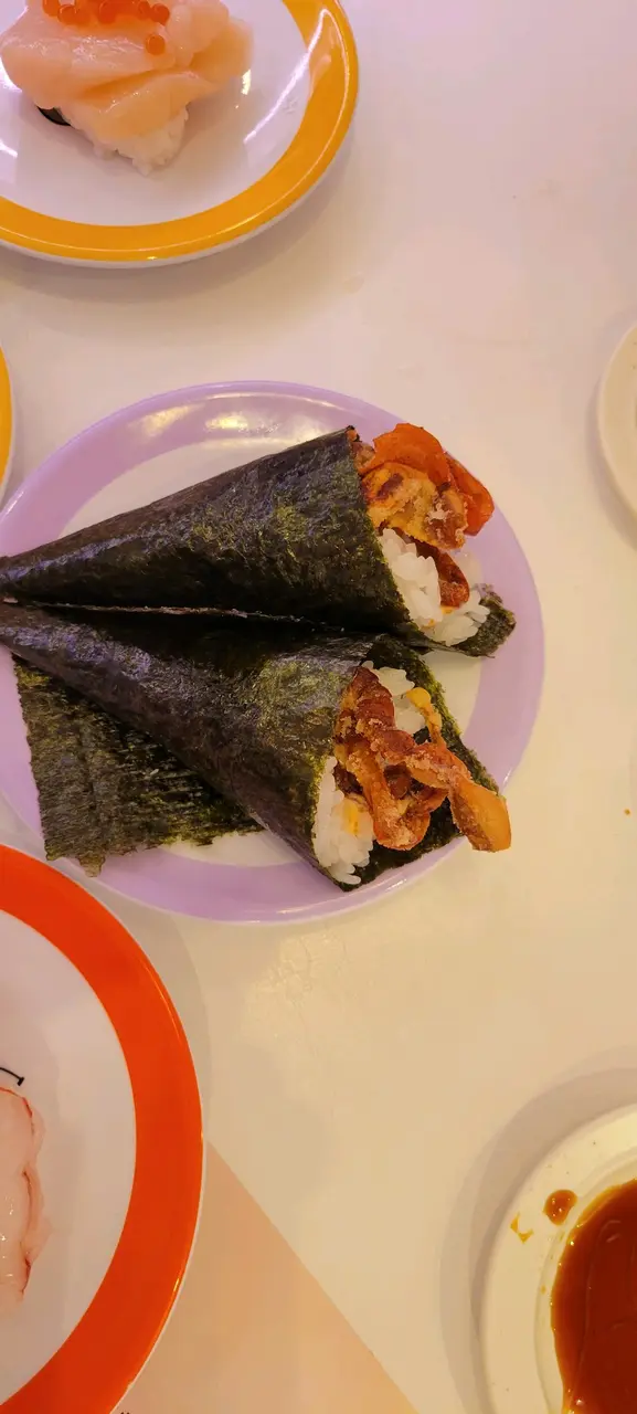 今天午餐時段來,發現不用等位坐下用手機點餐新出珍寶帶子壽司不錯真的超級厚身但忘了影相中吞拿魚感覺不錯三文魚親子和油甘魚賣相不好睇到都覺得質素差了好薄身……洋蔥柚子胡椒油甘魚都正常溫泉蛋,等了好一陣子炸三文魚皮應該好油,越食越覺得油味很濃,不是香脆,偏硬沒沙律醬完全吃不下……放棄查看更多