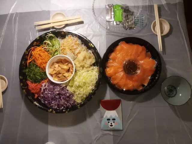 去元氣壽司不一定食壽司,還可以食極有新年氣氛的「撈起」(約$180)。不過既然是「元氣壽司」出產,也少不得日本特色的三文魚刺身:所以這一道也算是fusion菜。這道菜的材料除了魚生外,也包括多種菜絲:椰菜絲、紫椰菜絲、青瓜絲、甘荀絲、中華沙律、薑絲和蘿蔔絲等,就像七色彩虹一樣。加上花生碎和鬆化薄脆,配以特製的芝蔴梅子汁及調味粉撈勻,大家齊聲說「風生水起,大吉大利」等喜慶話語,好不熱鬧!相信始終這一道菜是粵菜,元氣做起來總是味道不及中菜餐館的好食,趴感覺是食一團菜絲,可能是少了一些材料。下次再訂其他餐館的「撈起」,再作比較!查看更多