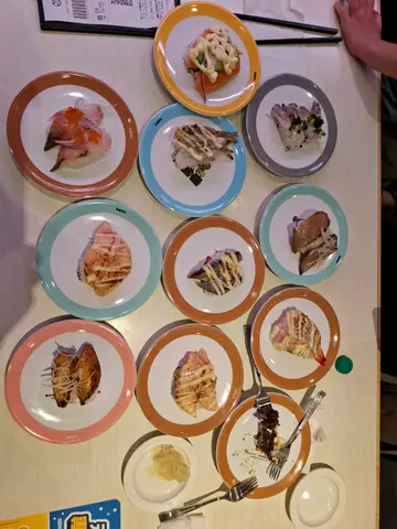 今日同2号契仔食饭,元气寿司🍣🍣🍣系必然之选。试又考完,试卷又派咗,咁就出嚟开心吓。小朋友就钟意食煎炸嘢,炸虾卷、炸鱼皮,都系佢哋必叫,又脆味道又好。而我就梗系食三文鱼寿司、生虾寿司,再嚟唔同款嘅军舰。样样都试,😋😋😋劲满足。我最钟意就系以甜品作业总结,芝士饼、朱古力饼、再加一个芝士蛋糕。差唔多系每一次去元气寿司必叫。真系大人细路都钟意🥰🥰🥰。而且坐得舒服,地方又干净。上网攞定位,嚟到舖头差唔多可以入座,之后仲可以喺商场行吓街,非常尽兴🎉🎉🎉