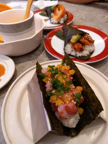 去到这家店嘅时候,好期待会有啲乜好嘢搞到我咋舌🤤。甜虾蟹膏实在系正点,蟹膏鲜香得黎满足感一流,吃落去真系几得意!虾仔鲜甜,咬落去弹牙有劲,仲有种微微海味,真系好开心😊!个炸虾卷外脆内软,酱汁伴得啱啱好,系𠮶种你食完一件又一件嘅「中毒」款!讲到个炙烧黑椒三文鱼,呢个真系正!啖啖肉,卖相金黄华丽,个黑椒香辣又唔会太过火,烧香的味道配上鲜嫩的三文鱼,真系边食边点头。换转食埋个芥辣八爪鱼,劲过瘾👌。有辣有咸有海味,啖啖芥辣刺激味蕾又唔会哏!最后,点可以唔提下软壳蟹手卷啊?脆口嘅软壳蟹加上沙律酱同蟹子,系真系食落去就停唔到口啦,层次感丰富,真系大赞😍。成个食饭体验有啲新鲜又唔会太过花巧,最正系就算食完成腹都唔会觉得好滞,几适合我哋咁嘅小市民嚟个开开心心嘅周末小聚。下次有机会,一定会再黎捧场嘅!