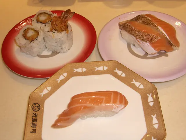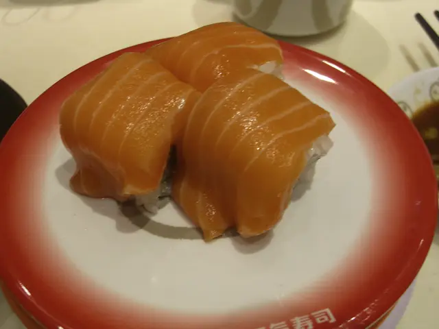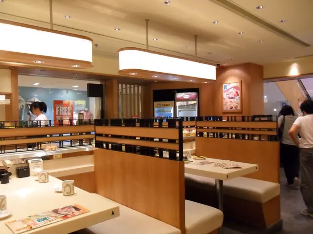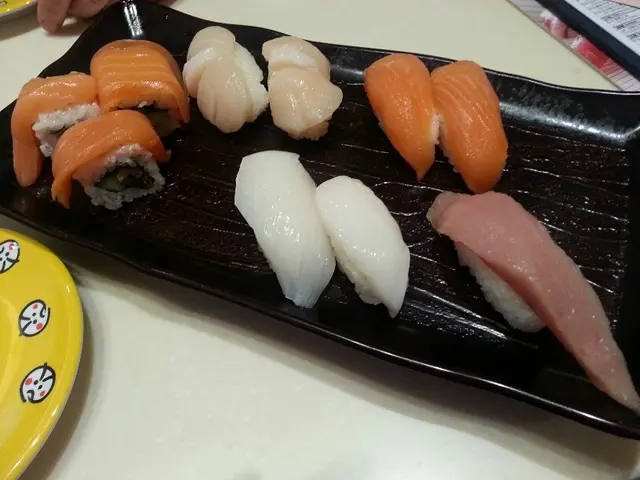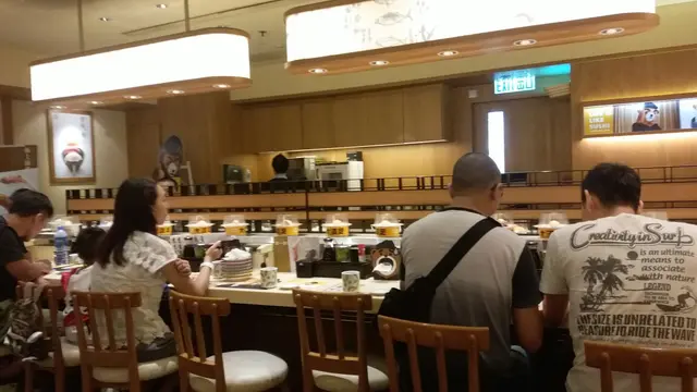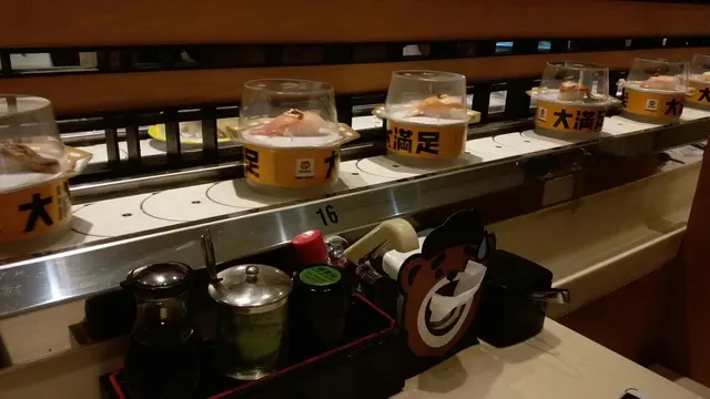 座位空空如也迴轉壽司帶上載滿不同款的壽司