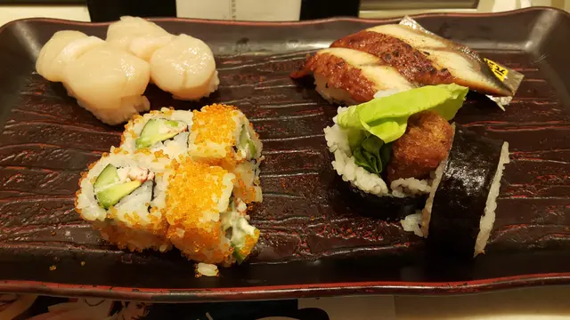 鰻魚壽司 + 帆立貝壽司 + 加州卷 + 豬肉卷