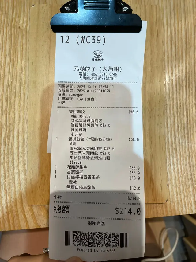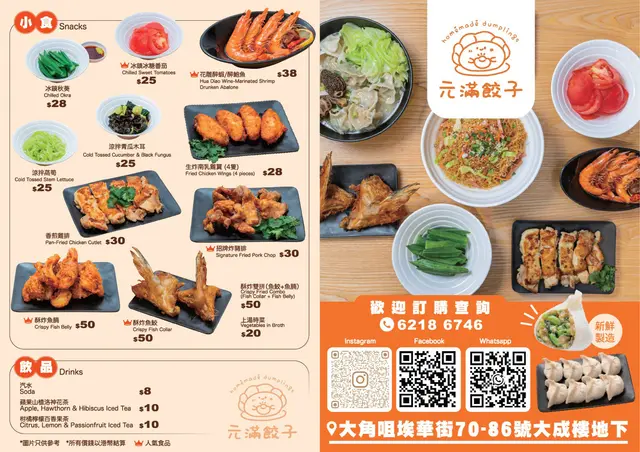 元滿餃子 (大角咀) 网址: https://s.openrice.com/QrLS0GYuF00 地址: 香港大角咀埃華街72號地舖 电话: +852 62186746