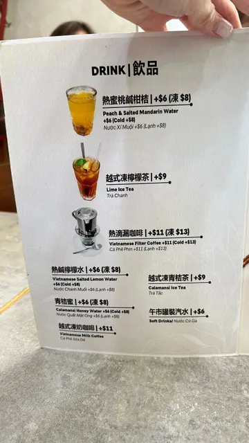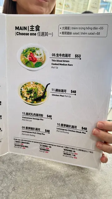 店内有1张6人枱,两张4人枱同一张2人枱,好彩即时有位女店员(店东)同我哋落单,之后佢同水吧男店员(店东)覆述系讲越南话,食物即叫即整海防猪肝酱小法包~外脆点埋个辣酱食好醒胃传统牛肉汤河~牛肉同河粉份量好足三拼汤河(生牛肉、牛丸同牛腩)咖哩鸡扒饭~鸡扒煎得香脆香茅猪扒饭~猪扒软嫰好入味