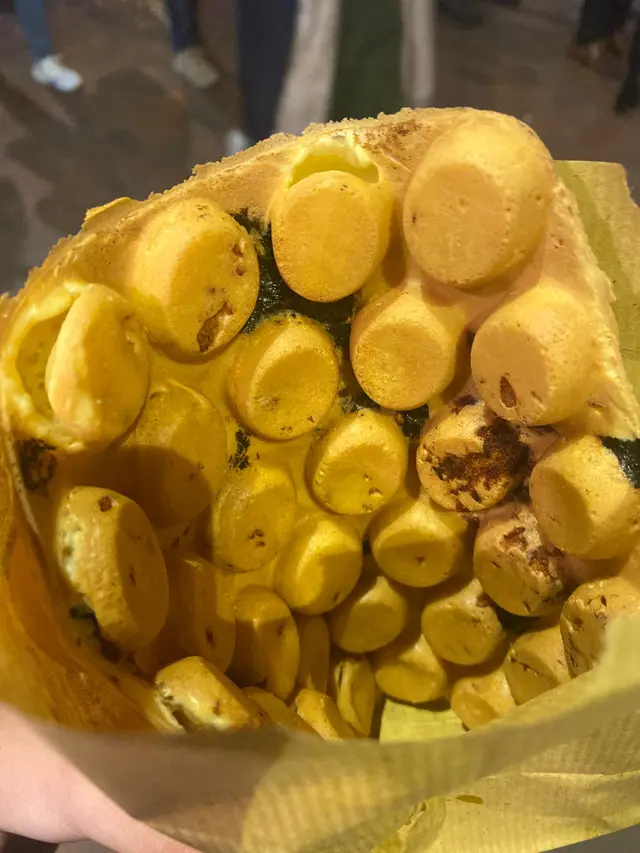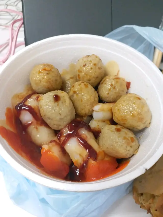 收工等巴士經過見到大排長龍既黃色小店,當然要一齊支持下啦🤜🏻買咗一份墨魚丸同埋紫菜肉鬆雞蛋仔,墨魚丸超大粒店主仲好細心咁𠝹開十字,唔使驚咬開嘅時候太熱辣到🤪✨紫菜肉鬆雞蛋仔雞蛋仔配料好充足,每一粒雞蛋仔都佈滿肉鬆同紫菜,而且外皮仲非常脆,巴士未黎到就已經食到得返個紙袋😋查看更多