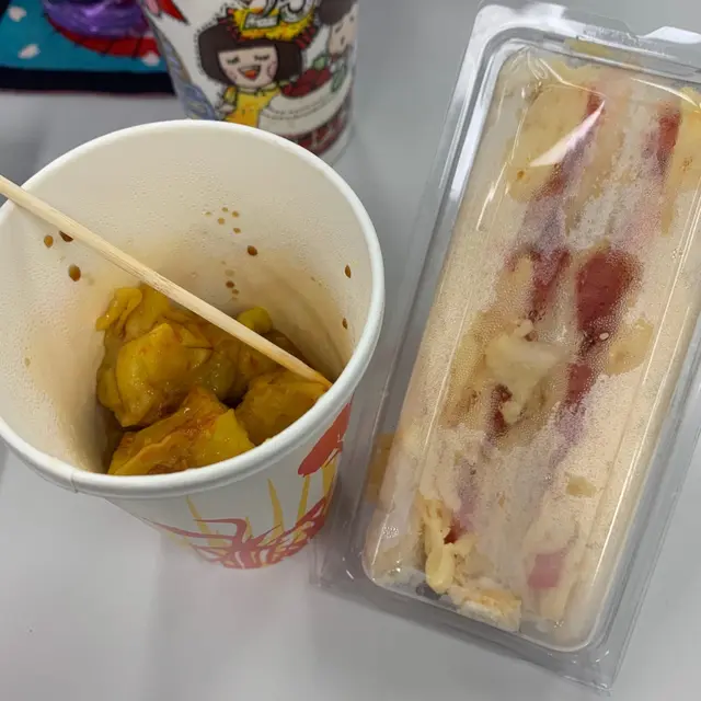 見呢間小店嘅招牌勁搶鏡,即管去試一試~買左茄蛋治同燒賣,茄蛋治啲蛋超厚身!勁足料~可惜一打開覺得太震撼,一啖咬左落去就唔記得影相🤪而燒賣就係彈牙煙靭果種,配埋辣豉油真係好正!佢嘅燒賣唔係便利店賣緊果種好實好粉膠膠地嘅燒賣,希望你明我講咩啦😂查看更多
