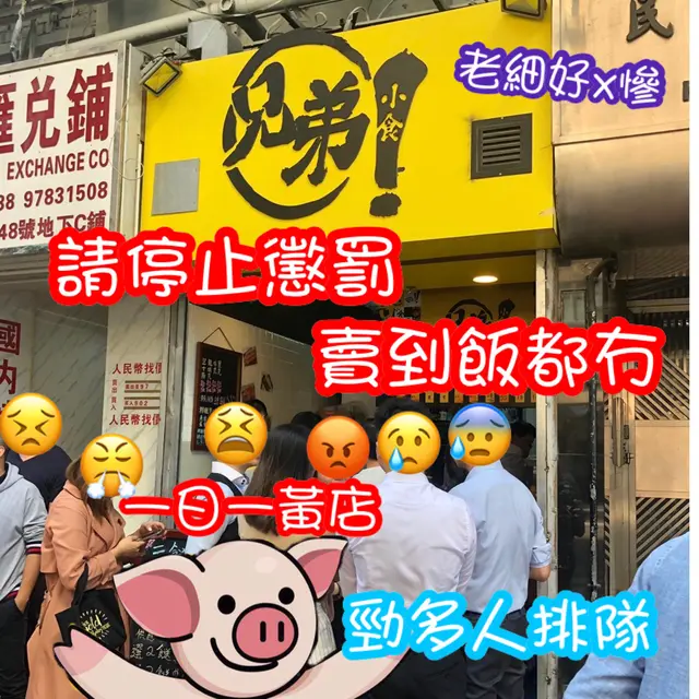 一日一黃店 老細做到嘔 請‘停止’懲罰佢望住都覺得唔人道!(可睇圖).是咁的 話說呢日中午黎到好多人 圍住呢間小小既店中午時間主要做2-3餸飯 (仲有魚蛋燒賣小食嗰啲)2餸飯$38 3餸飯$42 送250ml紙包飲品或罐裝汽水條隊唔係特長 主要食2/3餸飯 心諗人龍好快就會清點知排排下唔對路啦 條隊唔郁嘅?.排左大概半個鐘 終於排到我😭望住廚房店員/老細? 😰得通菜有現貨(可睇圖)2個人踢晒腳勁忙廚房唔大 叉燒炒蛋一份份咁炒落完單嘅時候 聽到店員講「雞翼同飯都無哂啦」你地咁樣懲罰人真係好唔人道.👌🏻野食味道ok 住家feel👌🏻份量大抵食👍🏻一個餸4隻雞翼 都算小見👍🏻個蛋都好實淨👎🏻飯相對軟身 可能岩岩煮好 未收水.店內有唔小文宣 同埋有獅子山 小貼紙分享我好似聽到佢話「無飯啦,之後要換麵」是日其實每位都排得好開心😂總結 你地咁樣懲罰人真係好唔啱.#兄弟小食 (鰂魚涌)鰂魚涌英皇道846號民新大廈地舖.查看更多