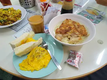 还没进去之前就已经见到个招牌上有一文一只的鸡翅。因为个人非常喜欢吃所以就打算进入专攻鸡翅。个符合条件是一定要同套餐一起点先可以点鸡翅。如果两个人都一定要点先可以叫,如果没就不可以叫了。姐姐都解释到非常清楚明白,态度良好,已经很长一段时间没在一地方吃到那么开心了。一进来就讲左中式没,意思就是所有需要炒的都没,但是我都ok的。因为想吃鸡翅而已。然后就点左份葱油鸡排,可能刚刚好遇上不好的季节,鸡排都没。只有猪排,真是好开心啊。刚刚都想吃猪排。个葱油真是好正,咸中带少少鲜味,但是如果想要多葱油记得一定要先同店讲先。真心各位friend一定要去试下。个人强推。…查看更多