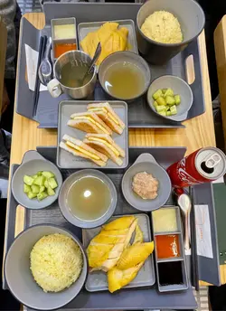 鸡髀全部去骨啖啖肉,肉质嫩滑多汁,入口充满鸡油香😍油饭粒粒分明,吸满油香,配上爽脆青瓜同一碗椰子清鸡汤,简单却满足~三色酱系亮点,尤其系姜蓉,磨得细滑无比,带有清新辣香,与一般粗糙姜蓉截然不同,完美提升鸡肉风味!套餐仲附送一杯饮品,拣咗冷泡乌龙茶解腻~🥢海南鸡下庄套餐 ($80)
