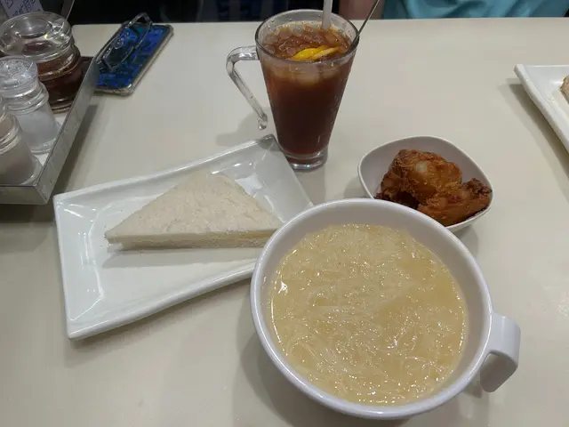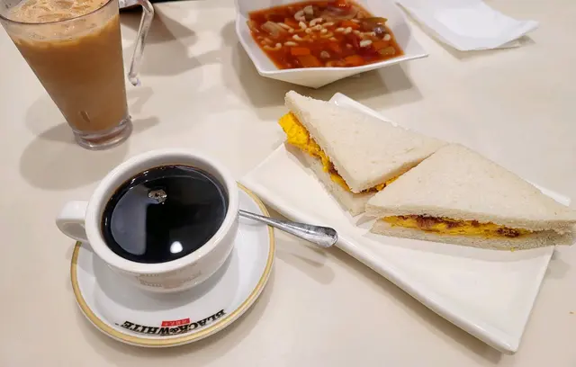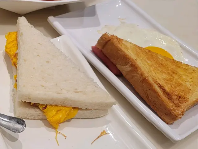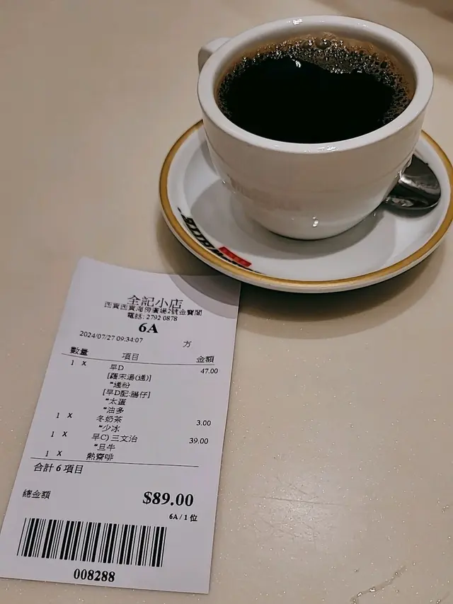 全記小店,位於西貢海旁廣場2號金寶閣地下9號舖。 每次去西貢船河之前都會食早餐,今次到這家茶餐廳, 假日早上人流很多。早餐 ~ 羅宋湯通粉,腸仔太陽蛋,牛油多士$47、凍奶茶$3、咸牛肉蛋治$39、熱齋啡。 ▫️羅宋湯通粉,腸仔太陽蛋,牛油多士$47 ~ 羅宋湯通粉的湯底味道好淡, 腸仔、太陽蛋和牛油多士正常發揮。 ▫️咸牛肉蛋治$39 ~ 咸牛肉平均偏少,咬落去少了份鹹香味。 ▫️凍奶茶$3 & 熱齋啡 ~ 兩杯飲品味道可以。 上菜速度係快, 食物質素一般。🏷️溫馨提示~ 整個用餐體驗均屬個人分享意見, 只作參考😊。     查看更多
