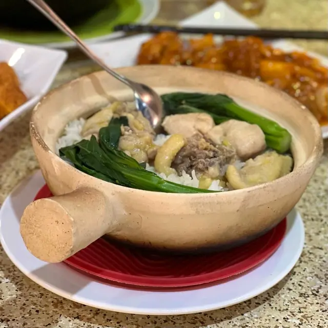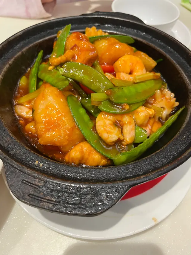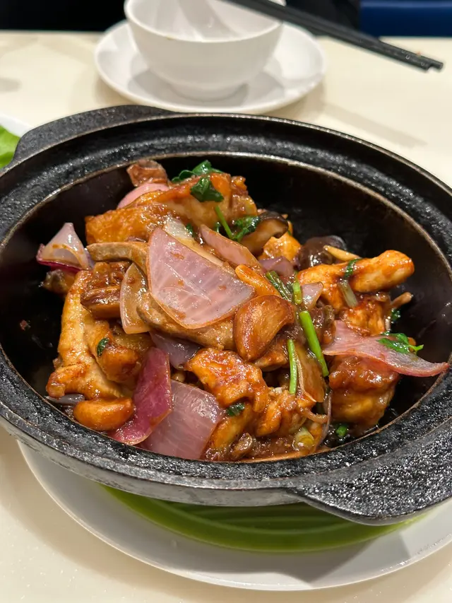 新年得新年餐牌,無煲仔飯,6人行,叫咗5道菜。年年有餘:(甜酸五柳醬魚柳)五柳醬夠酸,仲有醒胃橋頭,啖啖魚肉,魚皮炸到脆卜卜惹味混醬雞煲:混醬真係夠惹味,煲滾時好香,有辣味,食落口無辣味,老幼都啱食👍🏻瑤柱蛋白炒飯:香口,鹹度適中,餸未嚟,齋食飯都唔錯,飯都粒粒分明遍地黃金:(西蘭花鹹蛋蝦球)鹹蛋蝦球炸到圓轆轆,賣相唔錯!鹹蛋夠厚夠鹹,可惜蝦係急凍蝦⋯⋯蜜椒薯仔牛柳:甜甜蜜蜜,薯仔軟硬適中,好配合牛仔骨汁,送飯一流,牛柳較淋2樓樓底較矮,燈光稍暗,食客聲音大,回音重,好嘈🫨查看更多