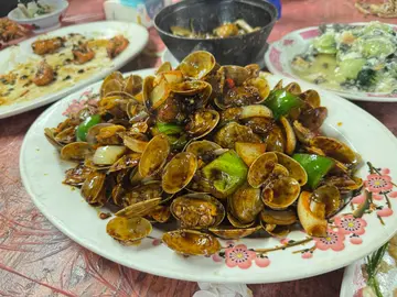 一攞住海鲜入去,老细就招呼我,三样海鲜,我都冇问加工费系几多,老细望住海鲜就自己自动波喺度讲,豉油王大头虾、豉椒蛏子王、陈皮蒸金古,送一碗例汤,另外叫咗两杯嘢饮同埋一碗饭,埋单$270。…查看更多