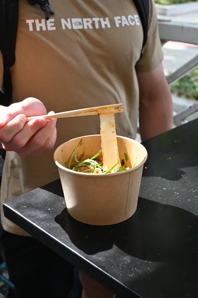 叫咗招牌涼皮(走辣)加一份雞絲,唔係手撕雞嗰啲雞絲,我覺得似雞肉多啲 。夏天食係真係爽嘅,涼皮煙靭,但最好慢慢食因為好滑,以免哽親 。多汁,應該係想令到成碗嘢都keep住涼,但亦都可能因為咁食完就覺得口渴,所以間唔中食一次就可以了。食完唔係太飽,六成飽啦,男士應該唔飽 。真係啱晒夏天冇乜胃口,又唔想食咁多嘢嘅時候 。暑假,大約晏晝12點幾過嚟,有一個姐姐處理食材,另一個處理落單+製作食物 。都要等一段時間,可能用外賣平台叫會容易啲就時間 。…查看更多